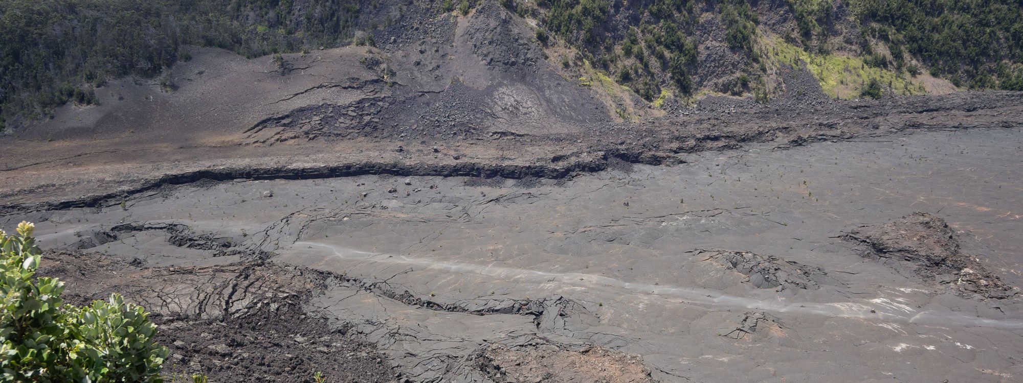 Nun ist es nicht so, dass der Kilauea ununterbrochen Gift und Galle spuckt und in einem fort tonnenschwere Gesteinsbrocken auf die bemitleidenswerte Umgebung hinabschleudert. Die meisten Eruptionen des Vulkans, auch die gegenwärtig andauernde, vollziehen sich relativ sanftmütig in Form hinaus quellender und z.T. unterirdisch fließender Lavaströme und viel heißer Luft (Gase und Dampf, um genau zu sein), die nebelschwadenartig über der Caldera liegt.