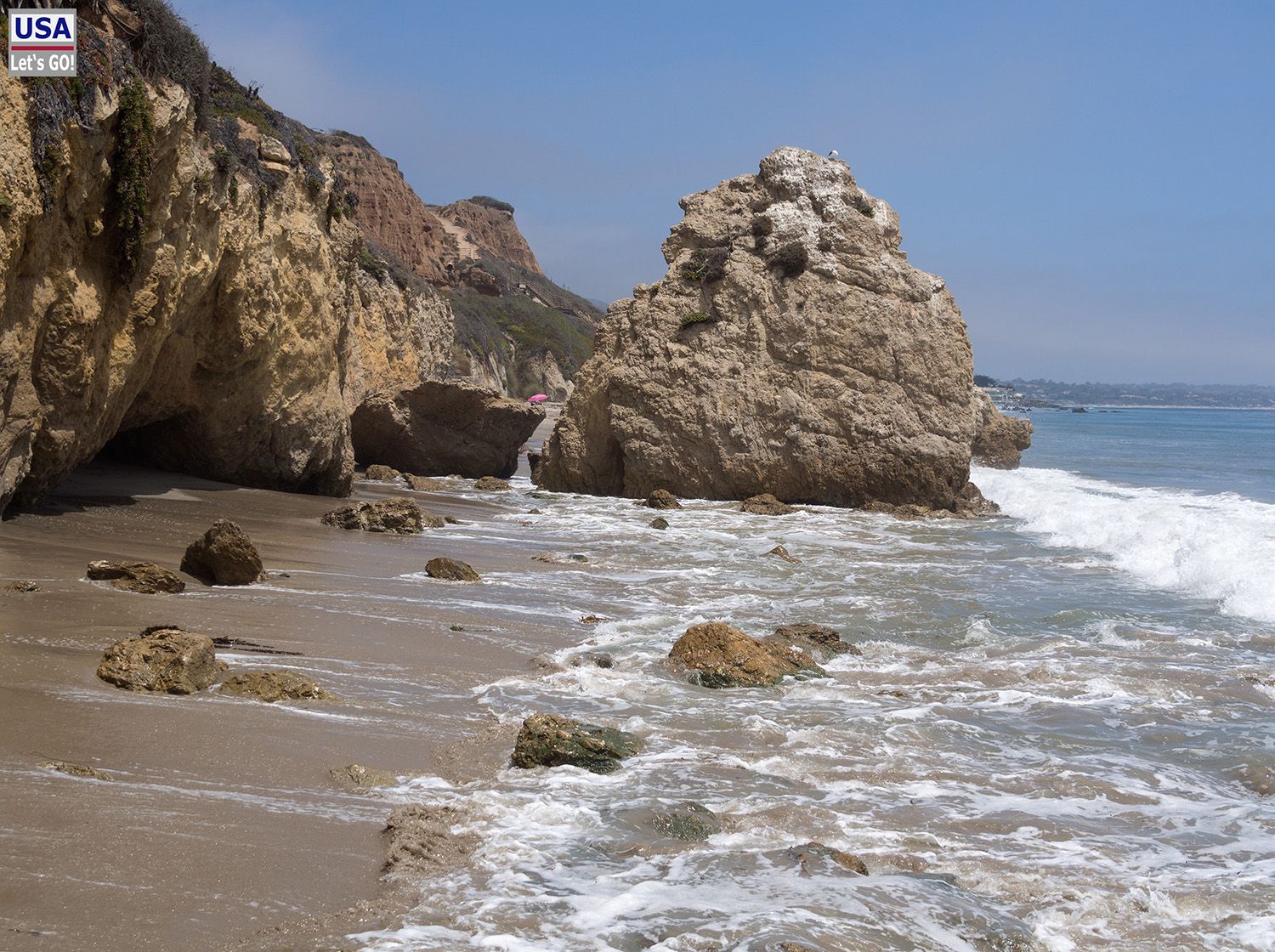 Nun sind wir strandfertig und fahren zurück zum El Matador Beach. Vom Parkplatz aus geht man etwa zehn Minuten die Klippen runter zum Strand und hat dann die freie Auswahl. Hübsch ist der Strand überall, die rauhen Felsen machen sich auf Fotos sehr gut.