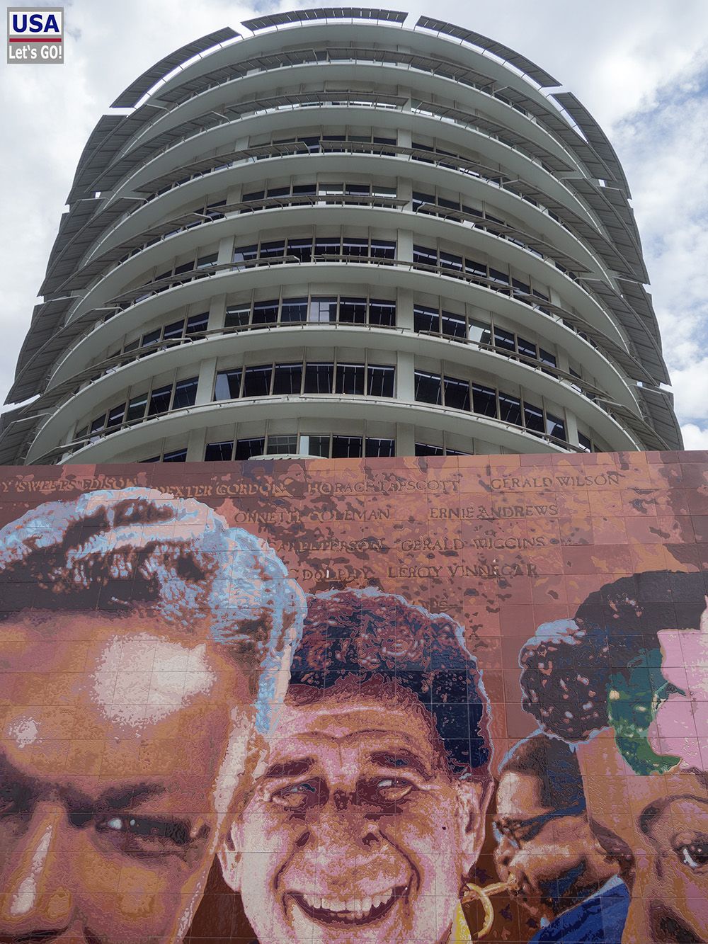 Das schönste am Walk of Fame ist ein großflächiges Mural mit dem Capitol Records Tower im Hintergrund, der seit seinem Bau im Jahr 1956 ein Wahrzeichen Hollywoods ist.