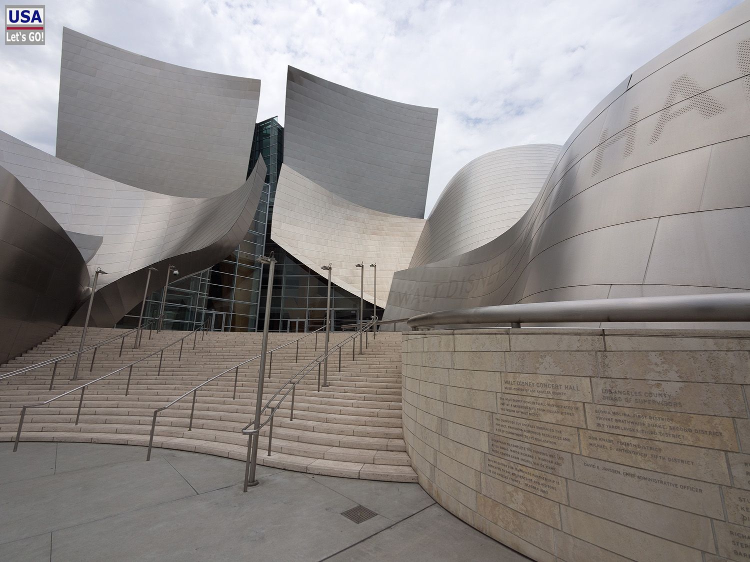 Die Walt Disney Concert Hall beeindruckt uns mit ihrer eigenwillig futuristischen Architektur. Wir machen einen Rundgang um das gesamte verwinkelte Gebäude.