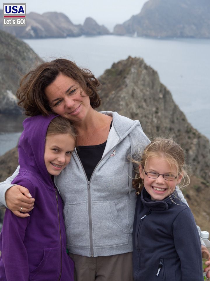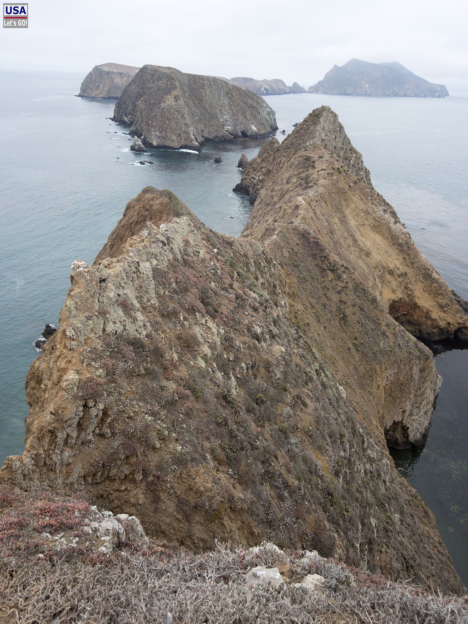 Gemeinsam gehen wir zum anderen Ende der Insel. Von dort hat man einen schönen Blick auf Middle Anacapa Island, wobei der Ozean heute leider grau-blau aussieht und nicht türkis-blau, wie dies bei Sonne der Fall wäre. Trotzdem ist das westliche Ende von East Anacapa ein schöner Ort zum Verweilen.