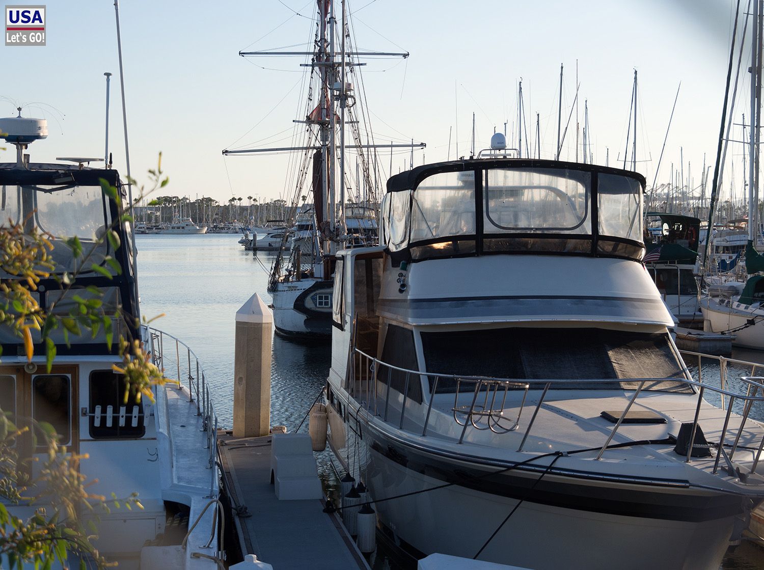 Der angrenzende Yachthafen sieht im Licht der Abendsonne hingegen recht attraktiv aus. Leider muss man durch einen Maschendrahtzaun fotografieren, freie Sicht gibt es nirgends.