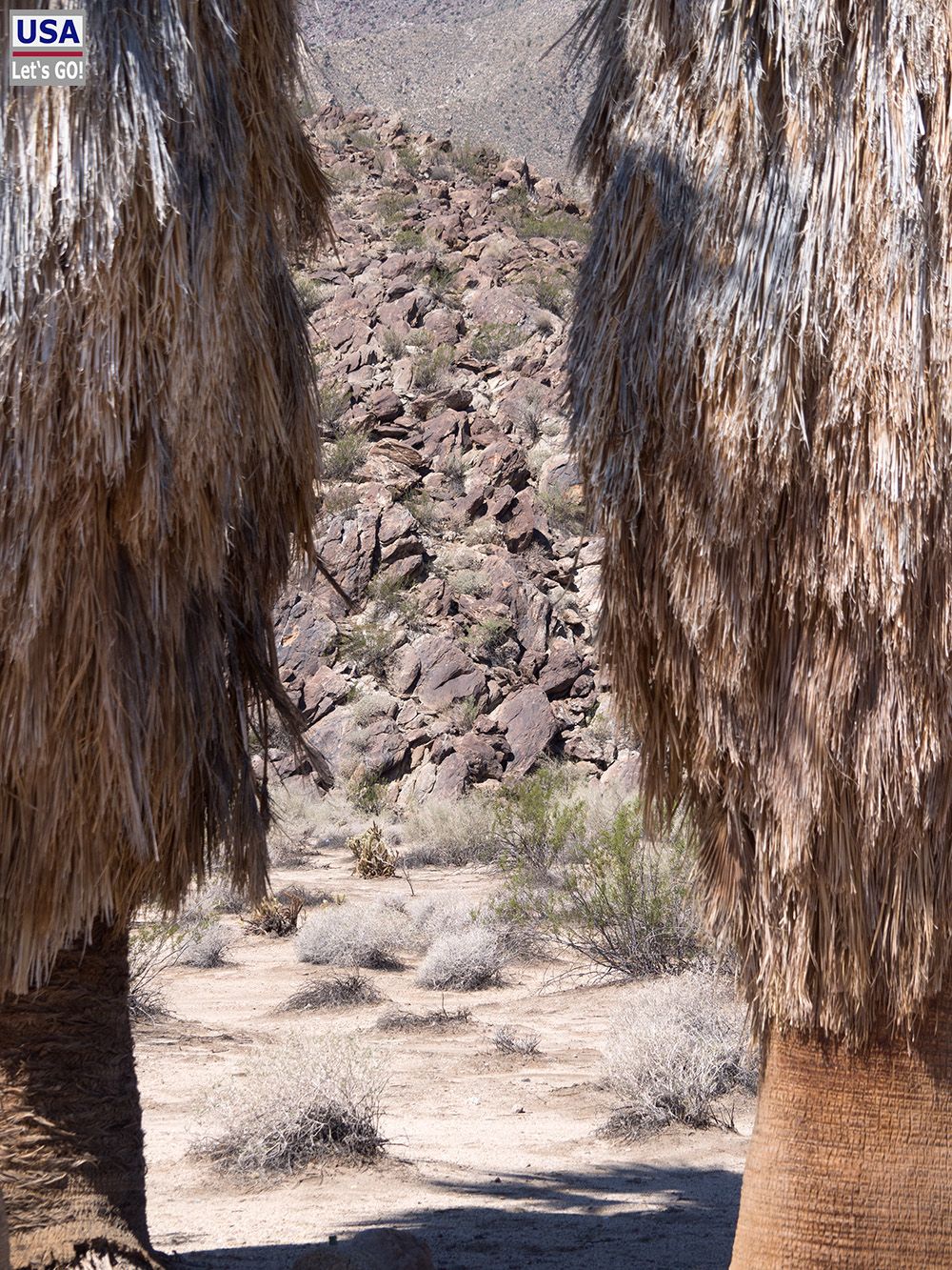 Wo ist bloß der trailhead? Ich fahre mehrfach über den ganzen Platz und suche und suche. Ein "Wanderer-Symbol" finde ich zwar, doch markiert dieses nur den Anfang des populären Palm Canyon Trail. Der ist mir zu dieser Jahreszeit zu lang. Also suche ich weiter doch ohne Ergebnis.