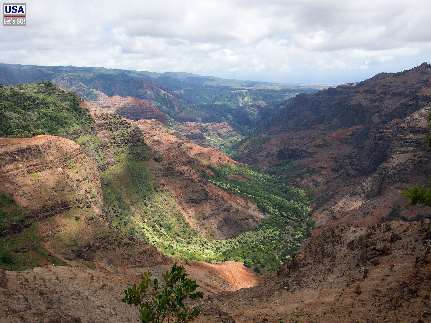 Am Pu'u Hinahina Lookout machen wir den nächsten Stopp. Der Ausblick auf den Waimea Canyon, der sich hier schon in voller Pracht ausbreitet, ist fantastisch.
