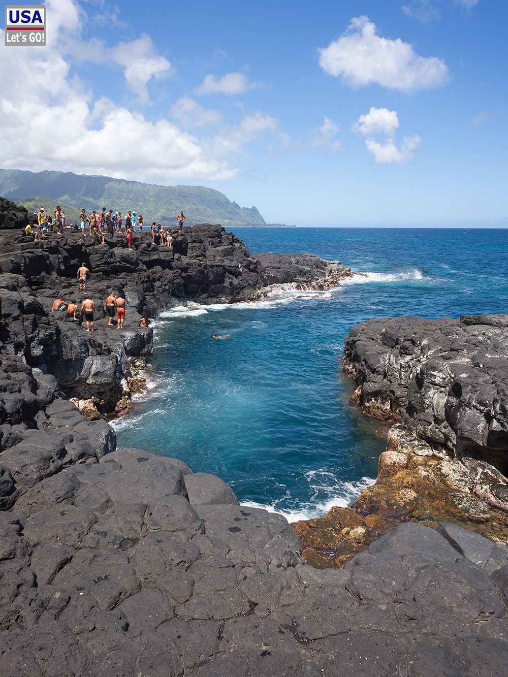 Vorher kommen wir an einer Stelle vorbei, die wir zunächst fälschlicherweise für das Queen`s Bath halten. Für eine ruhige Badewanne ist die Brandung hier aber viel zu stark. In Wirklichkeit ist es eher ein Tummelplatz für locals, die hier ihre Sprungkünste von den Klippen demonstrieren.
