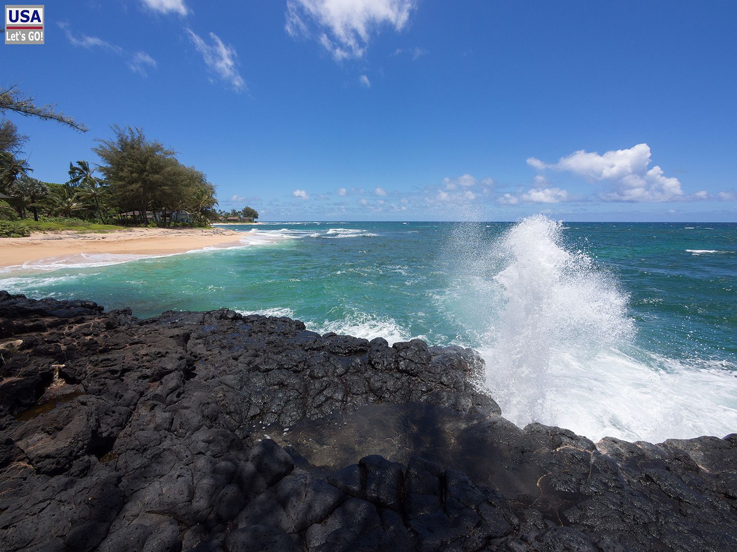 Am östlichen Abschnitt des Lumaha'i Beachs mache ich noch einen kleinen Fotostopp. Auch dieser Strand ist nicht von schlechten Eltern. Besonders beeindruckend finde ich allerdings die schwarze Lava-Felsenküste etwas weiter östlich.