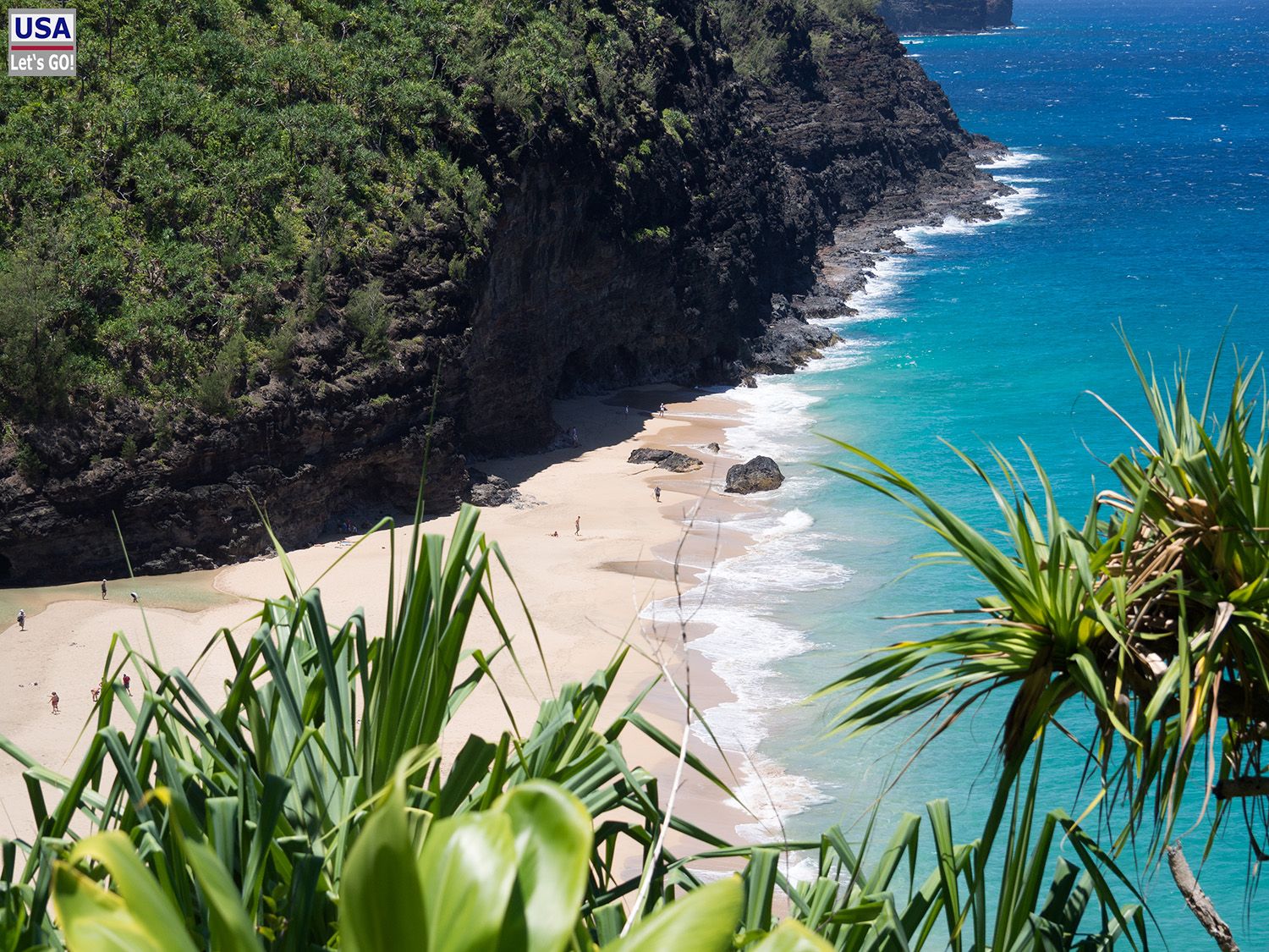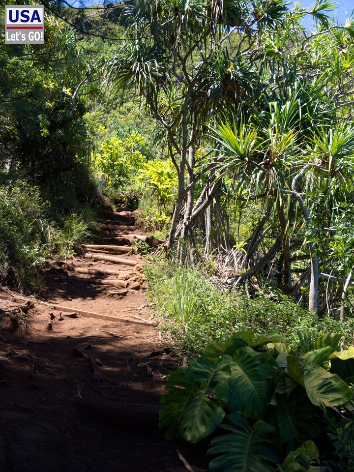 Lisa-Marie und ich schnüren unsere Wanderschuhe und machen uns dann auf den weltberühmten Kalalau Trail, der vor hier auf einer Länge von insgesamt 11,2 Meilen ins Kalalau Valley führt. So weit wollen wir natürlich nicht, außerdem braucht man dafür ein Permit. Unser Ziel ist der gut drei Kilometer entfernte Hanakapiai Beach.