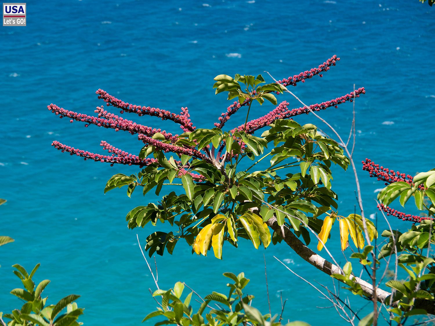 Die tropische Vegetation und im Hintergrund der Ozean - was für eine Kombination. Immer wieder muss ich anhalten um Fotos zu machen. Meistens packe ich die Kamera gar nicht wieder in die Fototasche, sondern halte sie in der Handschlaufe parat um nicht immer wieder kramen zu müssen.
