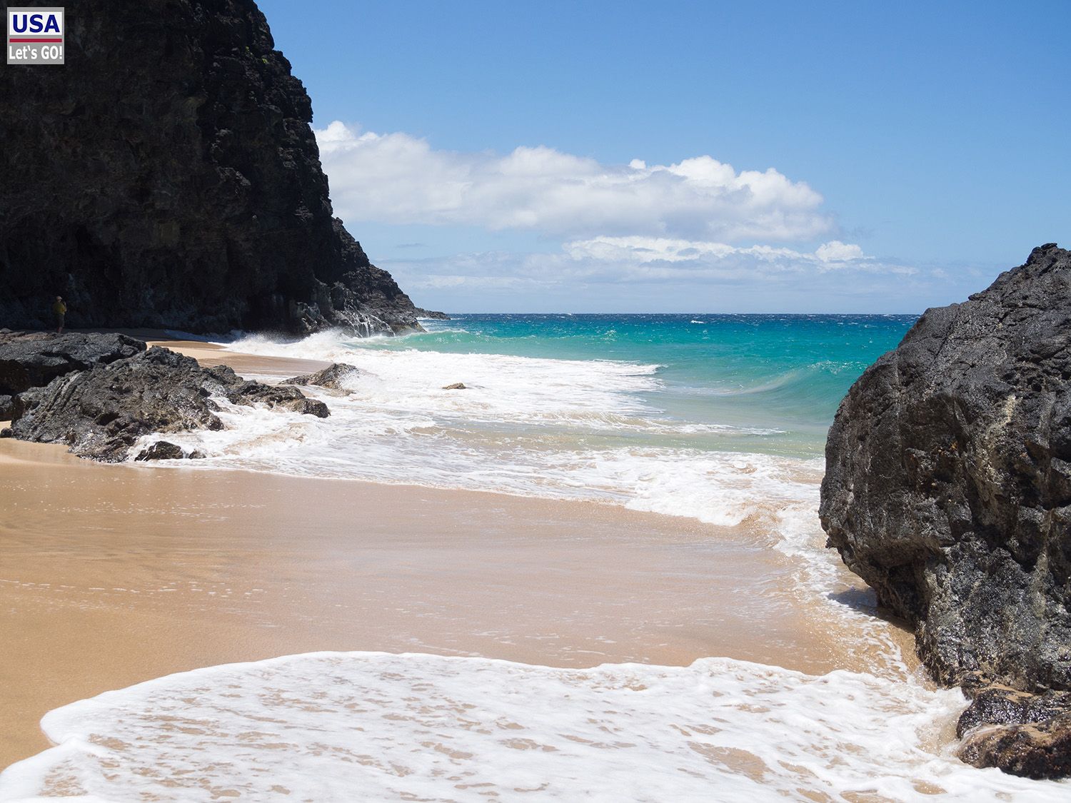 Wir passieren den Ke'e Beach Overlook und die Vorfreude auf eine kleine Schnorchel-Tour am dortigen Riff steigt. Kurze Zeit später spricht mich ein atemloses älteres Ehepaar an und fragt, wie weit es denn noch bis zum Overlook sei. Ich kann sie trösten, dass es erstens nicht mehr weit ist und zweitens der Ausblick die Anstrengung wert ist.