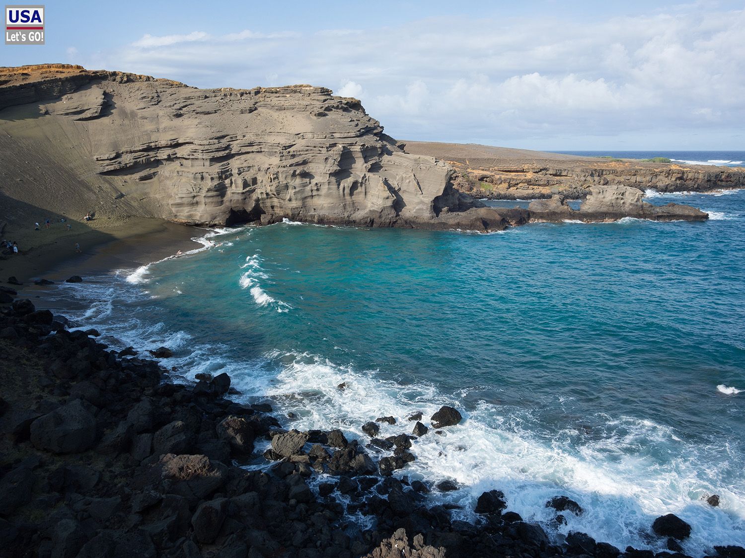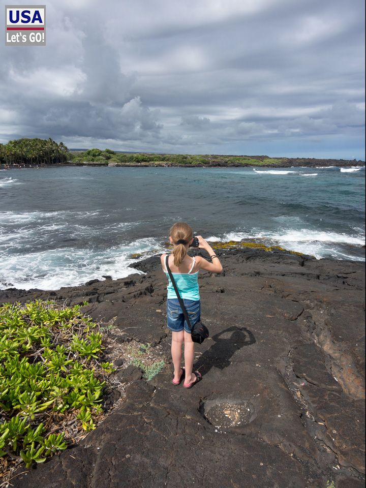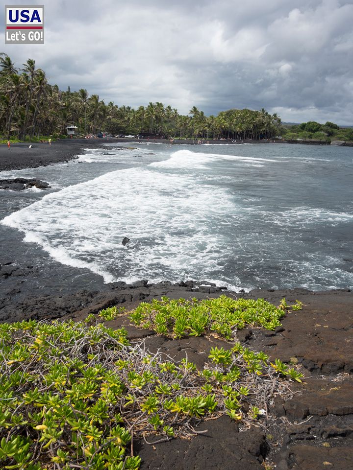 Der Strand jedoch ist klasse und gilt zurecht als einer der schönsten Lava-Strände auf Big Island. Die schwarz-grüne Koalition aus Lava und Tropen-Vegetation ist gar nicht mal schlecht.