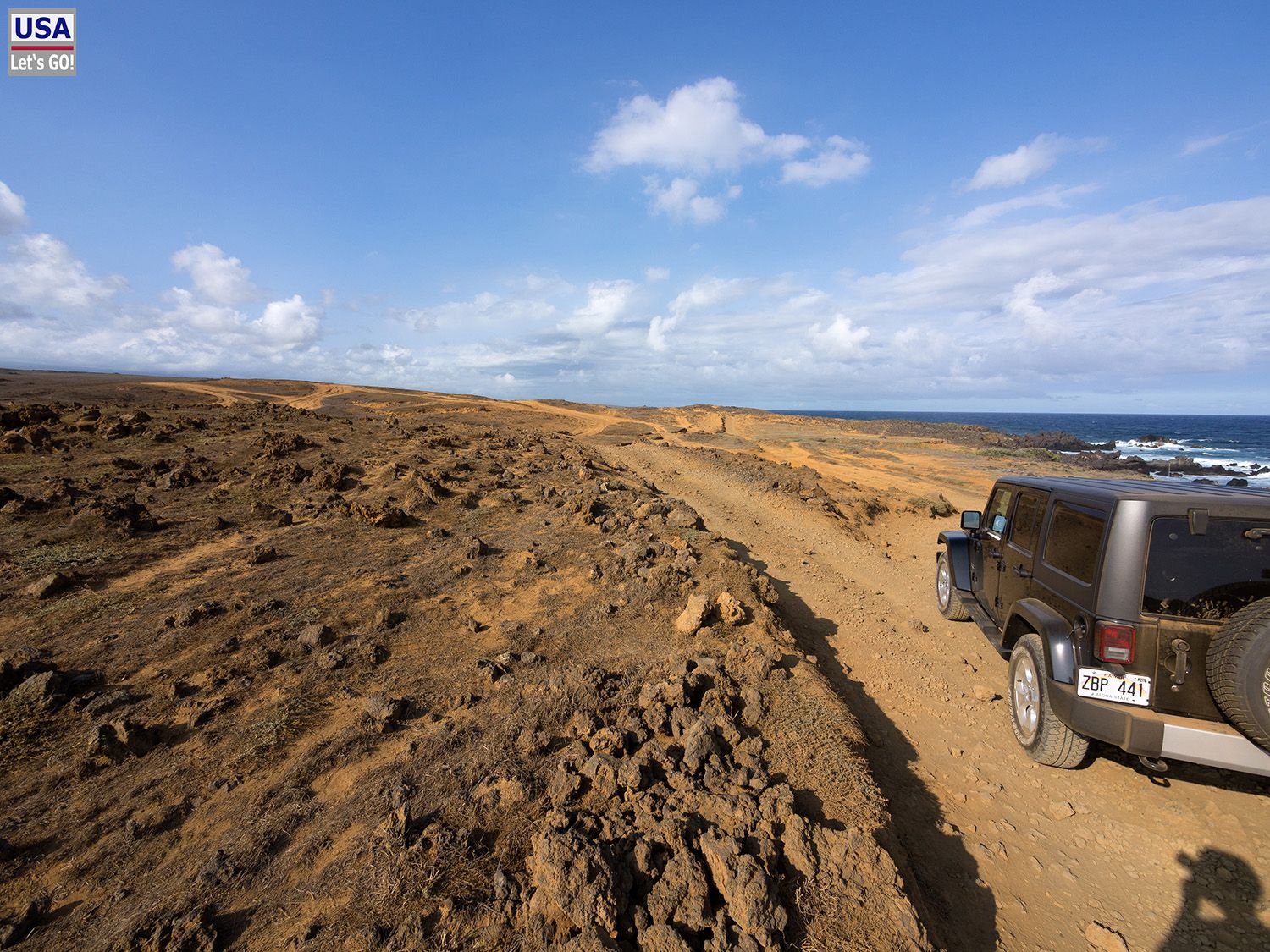 Zunächst suchen wir den Beginn der Jeep-Piste und hoppeln dabei ziemlich orientierungslos über die große und mit übelsten Schlaglöchern und bumps versehene Zufahrt der Kaulana Boat Launch. Das kann ja heiter werden. Ganz nahe am Wasser stoßen wir dann auf einen schmalen Weg, der mit Geröll übersät ist und für Autos mit normaler Straßenbereifung eine Tortur sein dürfte.