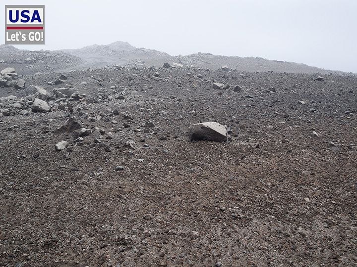 Wir machen auf dem Weg nach oben diverse Stopps um es langsam angehen zu lassen. Bald geraten wir in dichten Nebel. Alles ist grau in grau und es sieht aus wie auf einem fremden unwirtlichen Planeten.
