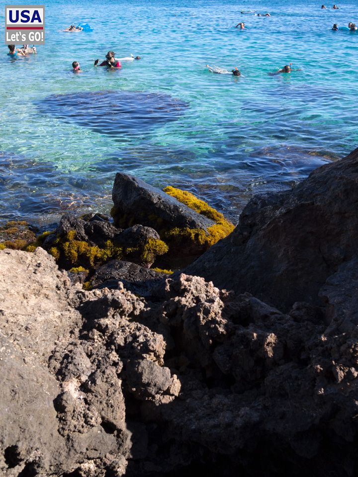 Hier muss man einfach schnorcheln, zumal Black Rock als eines der besten Schnorchelreviere auf Maui gilt. Lisa-Marie und ich fackeln nicht lange und schnappen uns die Ausrüstung. Annalena kommt auch mit und ist ganz begeistert, denn ganz nahe am Strand belustigt eine neugierige und fast schon aufdringliche Wasserschildkröte die vielen Touristen. Ich muss aufpassen, dass sie nicht meine Badehose mit Futter verwechselt.