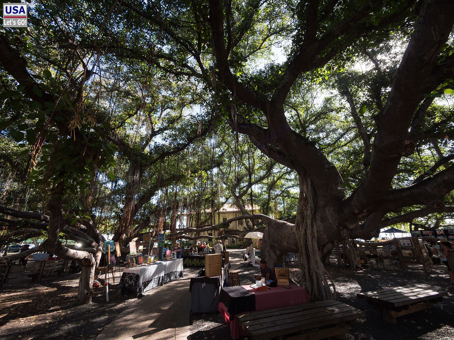Ist aber auch eine schöne Abwechslung. Hier gibt es richtig viel zum Gucken und die Kinder finden alles sehr spannend. Unter dem großen Banyan Tree im Herzen Lahainas findet ein Flohmarkt statt.