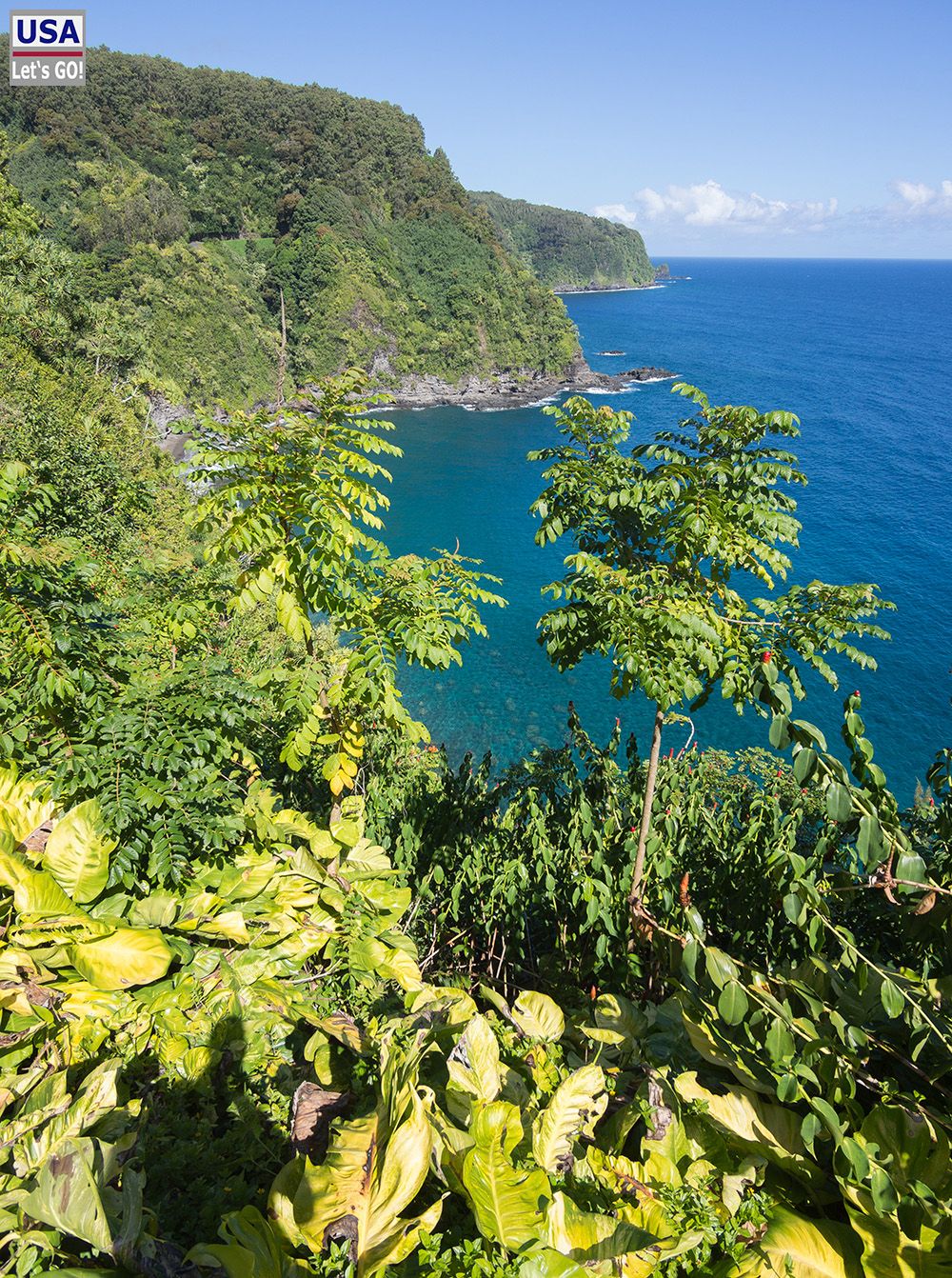 Nach und nach wird die Landschaft spektakulärer. Die Straße windet sich in mehreren Hundert Kurven an der Nordküste Mauis entlang durch dichten Regenwald. Hin und wieder gibt es grandiose Ausblicke, wie z.B. auf die Honomanu Bay.
