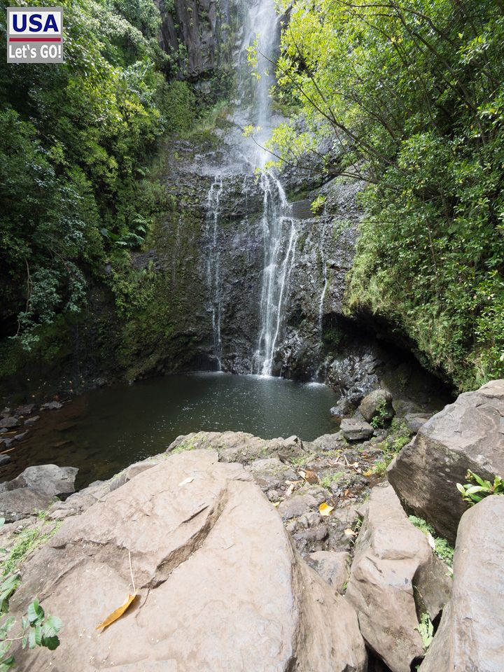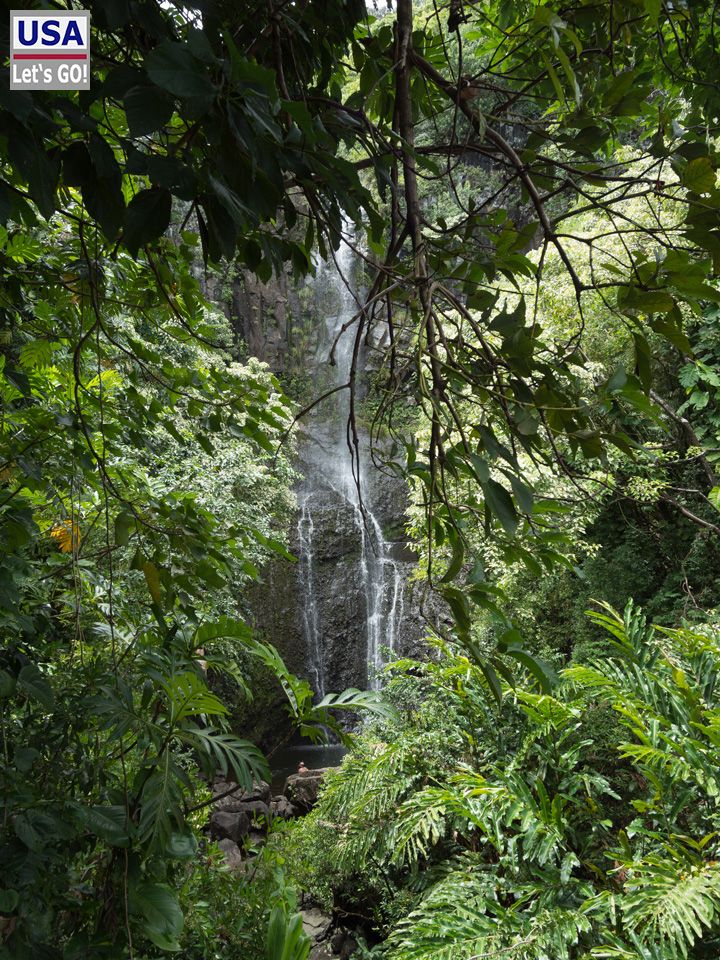 Wir fahren weiter und stehen bald auf der Brücke, die die Schlucht der Seven Sacred Pools überspannt. Schon von oben kann man erahnen, dass wir beileibe nicht die einzigen Besucher sind, die sich hierher verirrt haben.