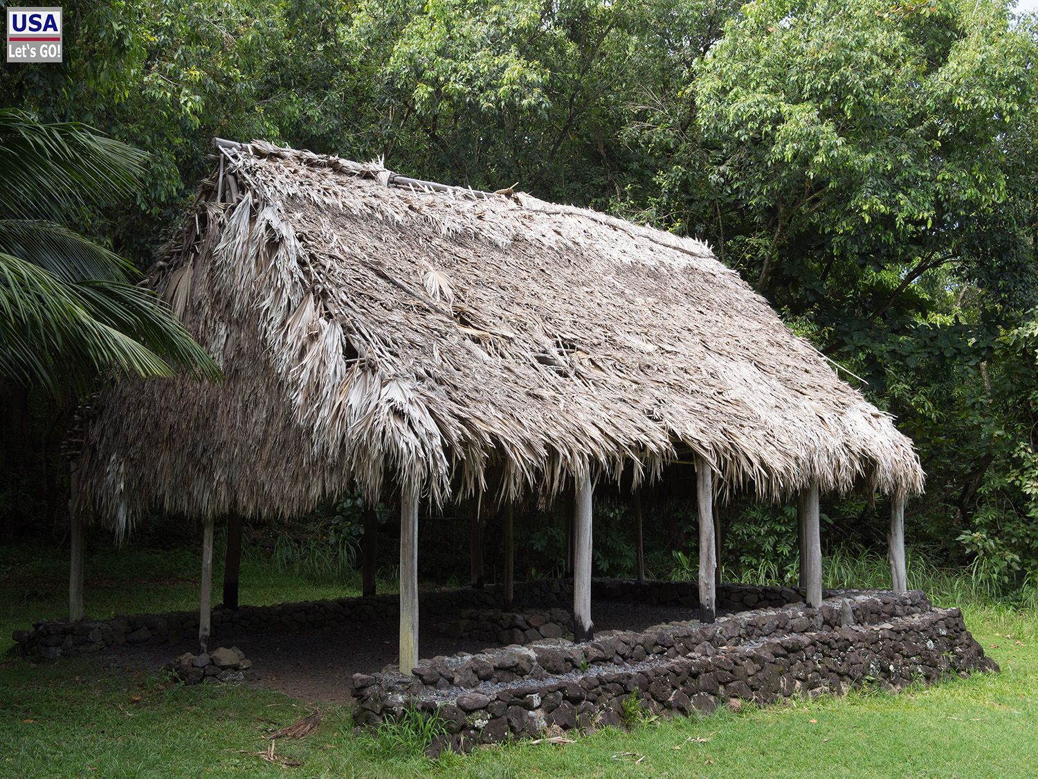 In der Nähe des trailheads steht ein rekonstruiertes traditionelles hawaiianisches Lagerhaus (Hale Ku'ai) mit dem charakteristischen Strohdach.