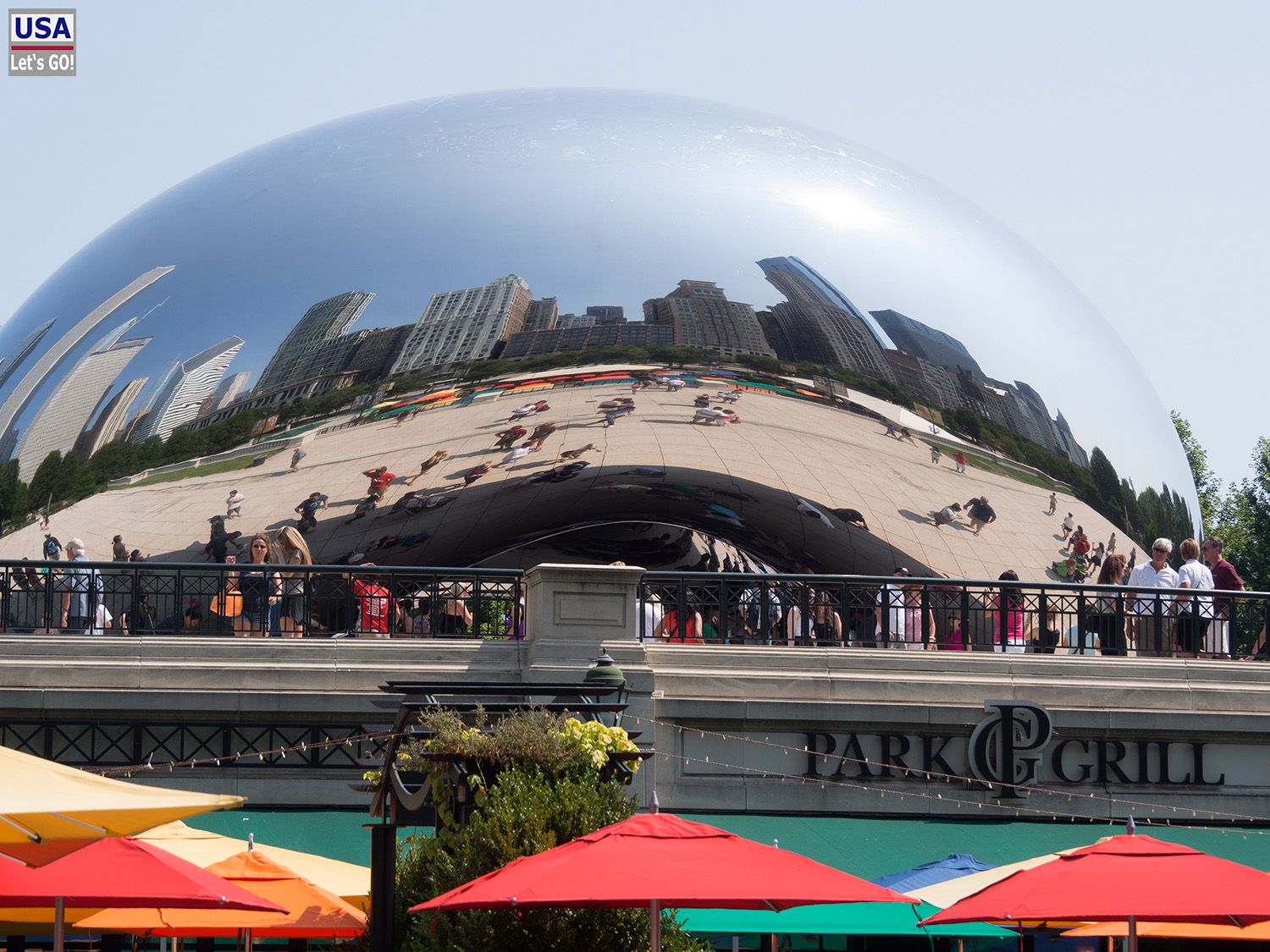 Langsam wird es Zeit zurück zum Hotel zu wandern. Der Weg dauert mindestens eine dreiviertel Stunde schätzen wir. Wir gehen die ganze Michigan Avenue runter nach Süden und kommen wieder an der Cloud Gate vorbei. Ein letztes Foto von der Chicago Skyline.
