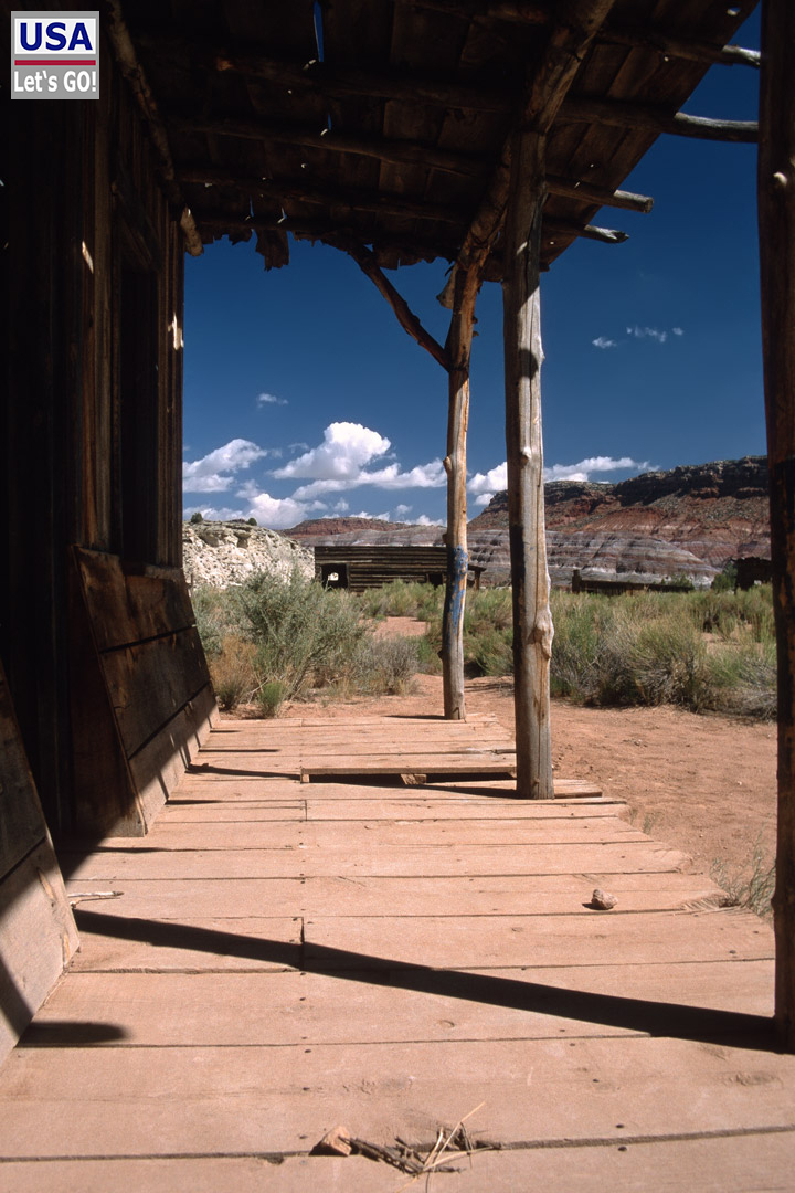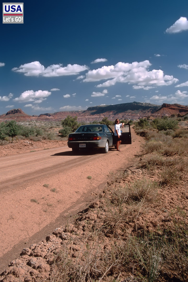 Schon 1996 (und ein paar Jahre früher) hatten unbefestigte Straßen einen besonderen Reiz für Anja und mich. Eine solche dirt road führte zu einer leider heute untergegangenen Location, dem Paria Movie Set. Dabei handelte es sich um eine Kulisse für Westernfilme, die zwischen 1963 und 1991 hier gedreht wurden.