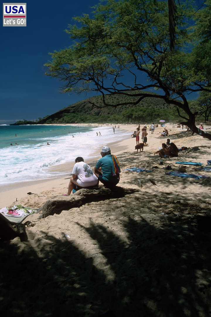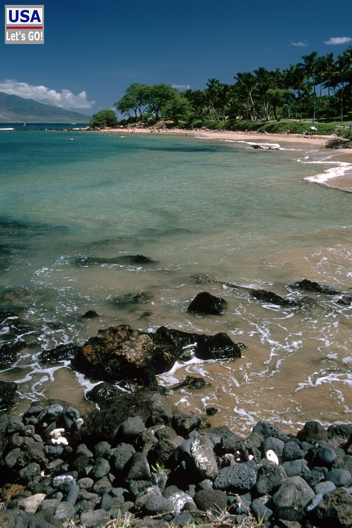 Am Sugar Beach etwas nördlich von Kihei, verbrachten wir einen schönen Vormittag. Im Hintergrund sieht man die Berge von West-Mau'i