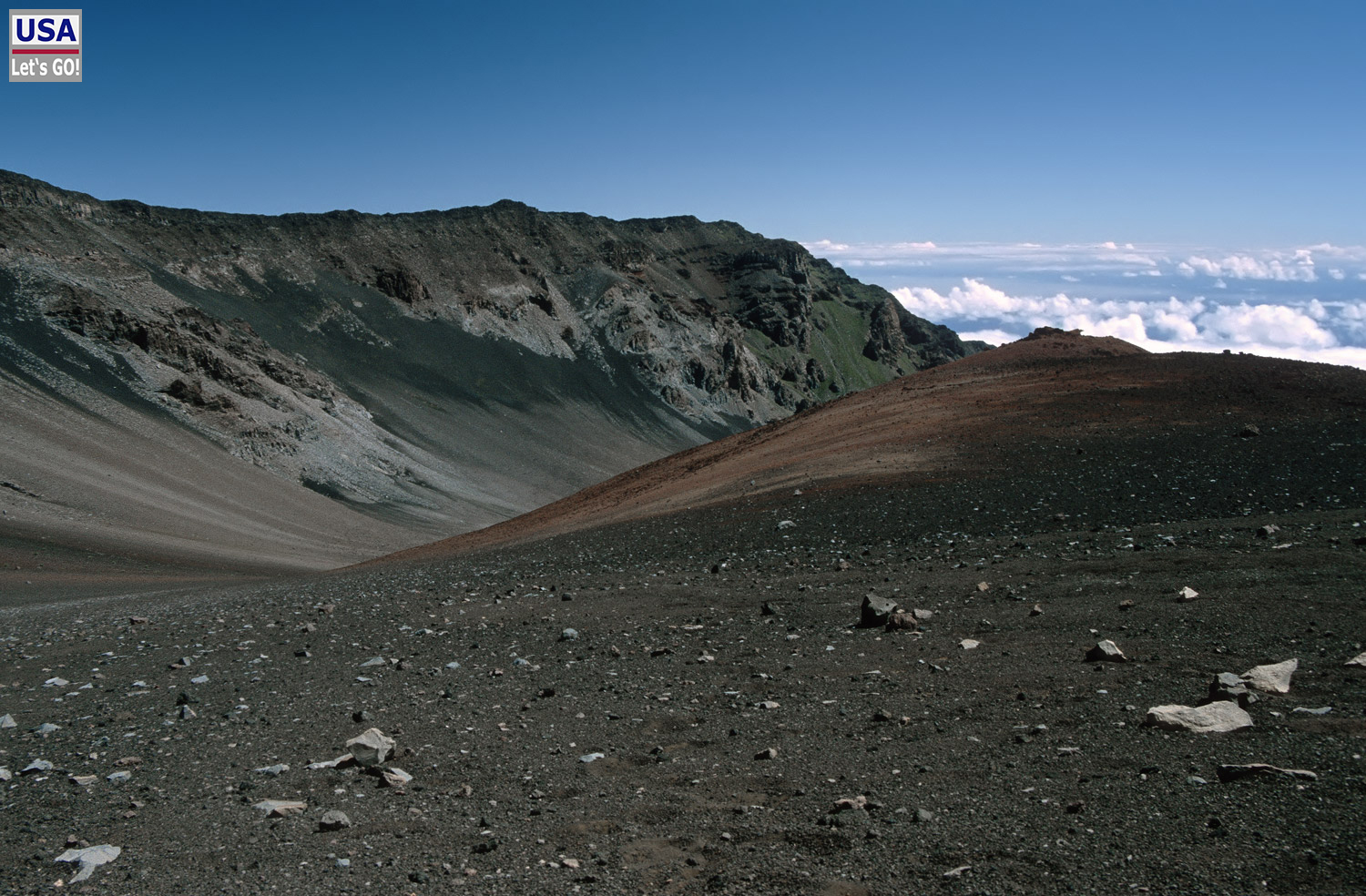 Ein Höhepunkt unserer Mau'i- Rundfahrt war der Haleakala. Wir fuhren zum Gipfel und tauchen dabei in eine komplett andere Welt ein. Eben noch am Traumstrand, waren wir plötzlich im Hochgebirge und ganz oben in einer spröden Vulkanlandschaft, die auf dem Mars bestimmt nicht viel anders aussehen würde.