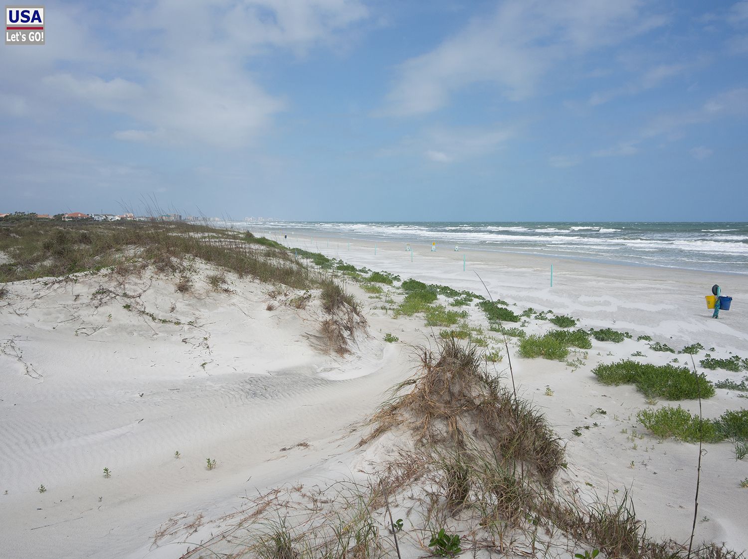 Leider ist es so windig, dass man die Campingstühle festhalten muss, damit sie nicht weggeweht werden. Nicht mal an der etwas windgeschützten Seite zum Halifax River hin, lässt es sich gut aushalten. Ich mache einen kleinen Spaziergang und erkunde den Strandabschnitt, der vor dem offenen Ozean liegt. Wunderschöne Dünen und tolle Brandung.