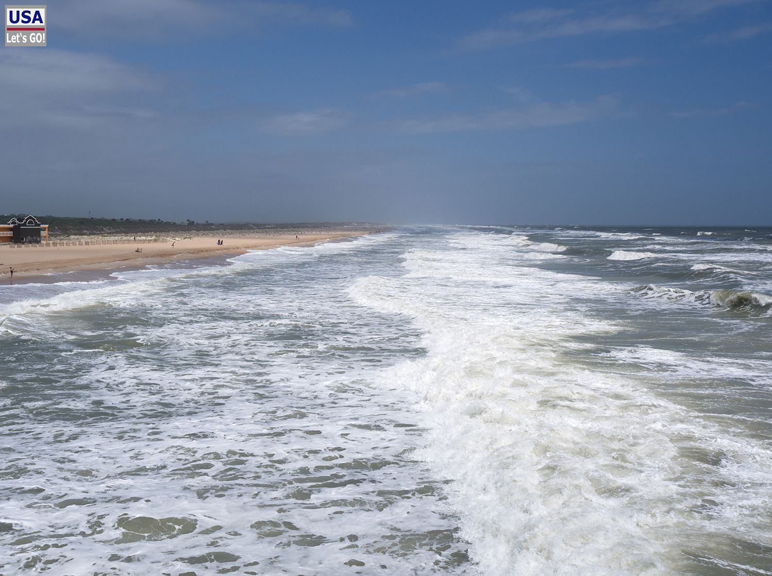 Wir fahren ein paar Meilen Richtung Süden nach St. Augustine Beach. Dort parken wir wiederum bei strahlendem Sonnenschein direkt am Pier. Wir bezahlen jeweils unseren Dollar Gebühr und lassen uns dann den Wind um die Nase wehen. Die Brandung ist einfach herrlich.