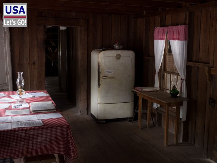 Wir fahren weiter und halten beim kleinen Parkplatz in der Nähe des Chesser Homesteads. Gut mit Off Deep Woods versorgt, machen wir uns auf den kurzen Weg zu dem Anwesen der Familie Chesser, die hier von 1927 bis 1958 gelebt und eine kleine Farm betrieben haben. Alles ist originalgetreu erhalten.