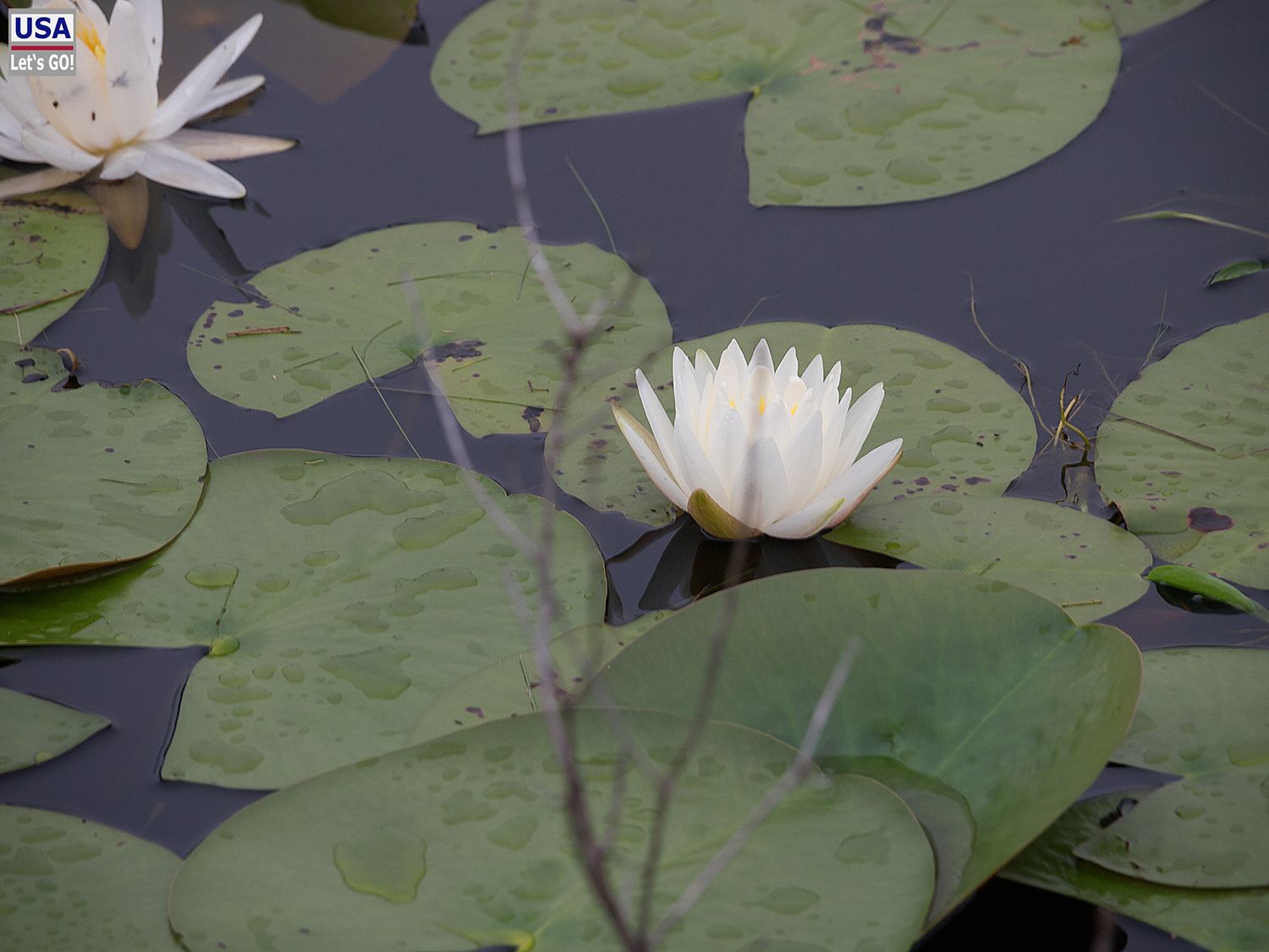 Wir statten zunächst dem Visitor Center einen Besuch ab und überlegen, ob wir eine geführte Bootstour bei Okefenokee Adventures buchen sollen. Aber gerade ist eine Gruppe losgefahren und die nächste Tour geht erst in zwei Stunden. Darauf warten möchten wir nicht, also machen wir uns auf eigene Faust auf den acht Meilen langen Swamp Island Drive. Das ist eine self-guided driving tour, die zunächst zum Alligator Pond führt (s. Bild rechts).