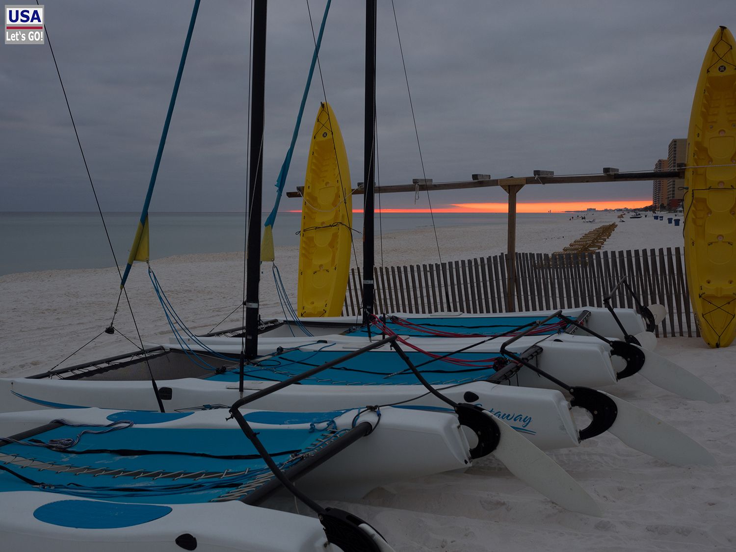 Panama City Beach hingegen ist - wie viele andere "Beach-Zusatzstädte" in den USA (z.B. Miami Beach, Fort Lauderdale Beach, Bradenton Beach, St. Augustine Beach) - ganz auf Tourismus eingestellt. Bettenburgen direkt am Strand und unzählige Resorts und Motels machen die Auswahl schwer. Wir haben diverse Coupons, doch unser Topfavorit, das Boardwalk Resort, stellt sich als viel zu teuer heraus. Der Zimmerpreis geht ja noch, aber 45 USD Damage Waiver, also eine vorsorglich kassierte Gebühr für eventuell angerichtete Beschädigungen (die nicht wieder rückerstattet wird), sind eine Frechheit.