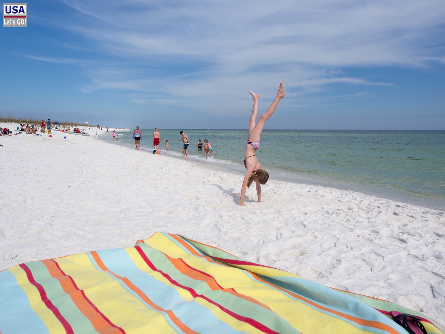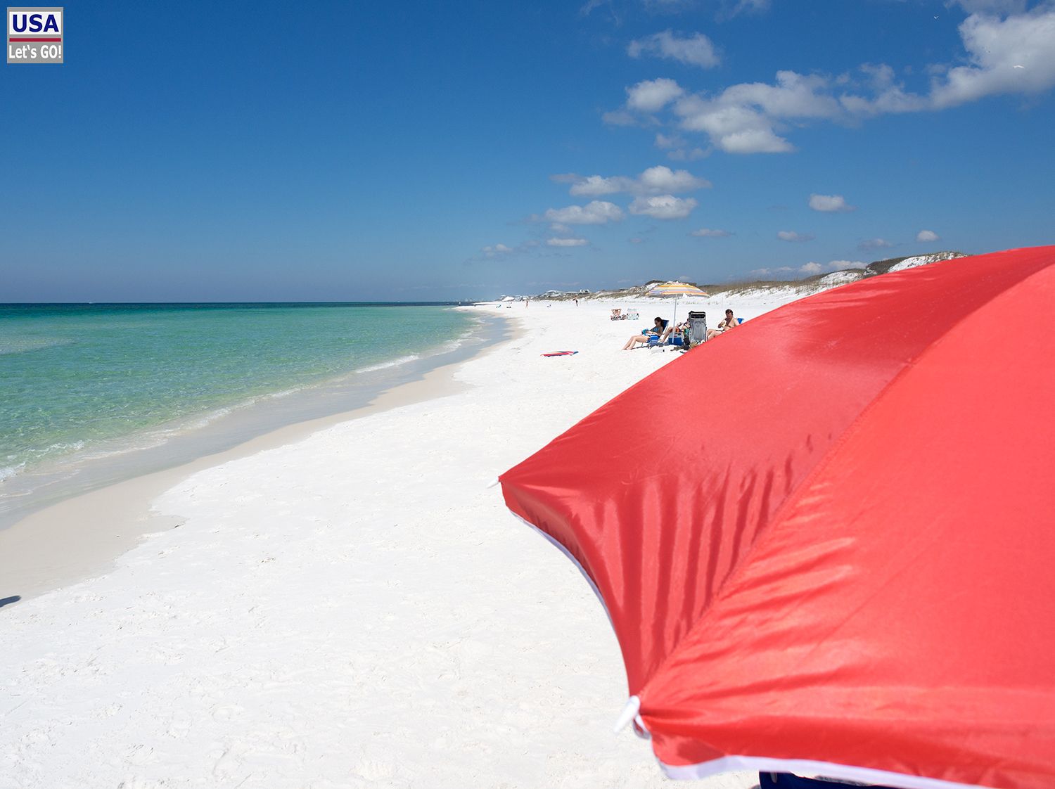 Anhalten tun wir erst bei unserem nächsten Ziel: Grayton Beach State Park. Der Strand ist ein Traum. Blauer Himmel, türkises Wasser, fast weißer Sand und dazu unser knallroter 9,99 USD Walmart-Super-Duper-Sonnenschirm.