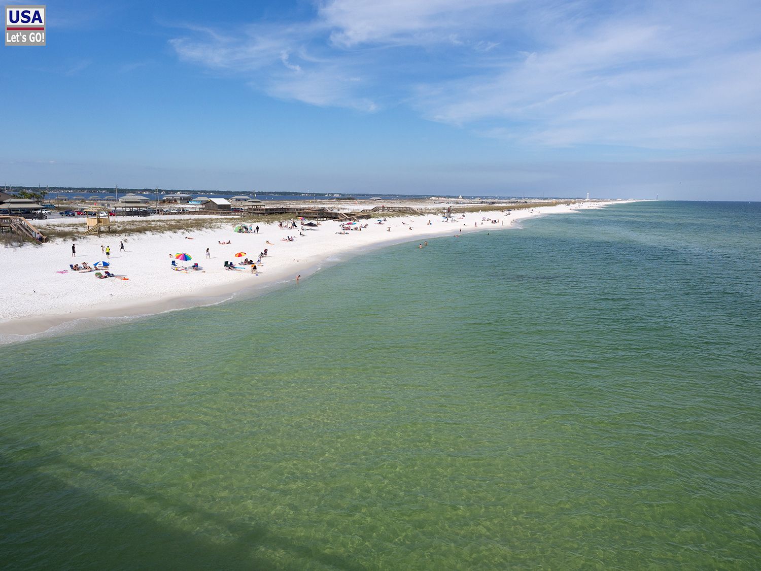 Zufällig sehe ich das Eingangsschild zum Gulf SP und mache einen zehnminütigen Fotostopp. Im Hintergrund sieht man den langen fishing pier, der der längste seiner Art im Golf von Mexico ist.