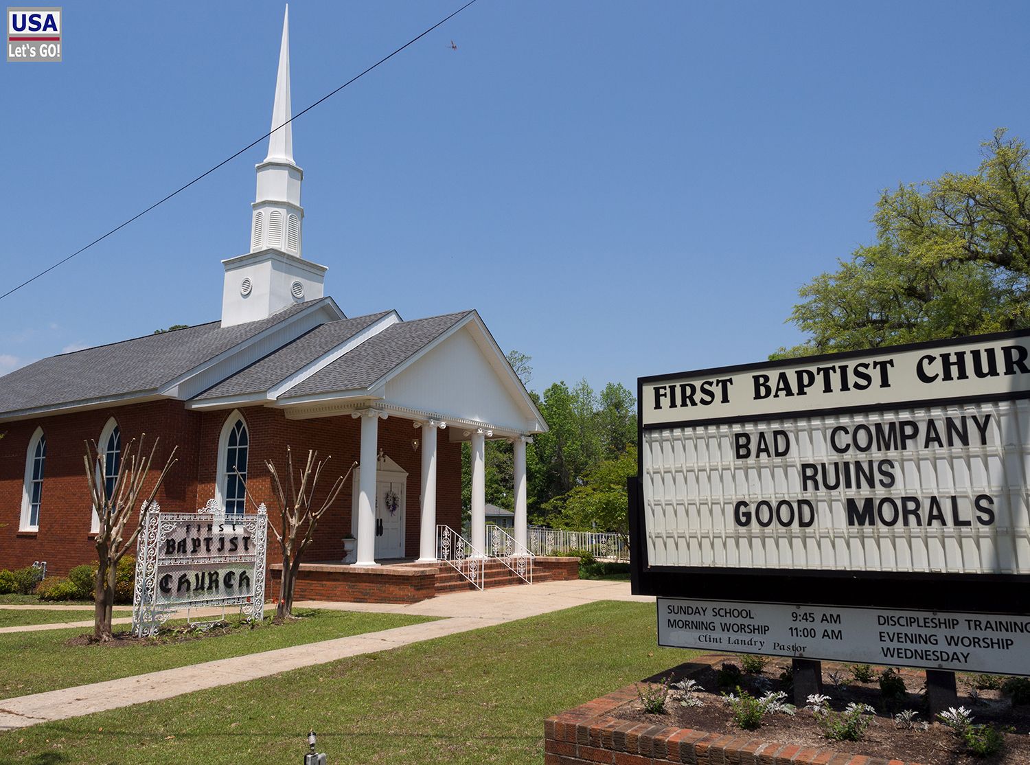 Die Fahrt führt durch kleine Dörfer mit unzähligen, tip-top gepflegten baptistischen Gotteshäusern. Man merkt, dass wir hier im bible belt Amerikas sind. Dort sind Baptisten die dominierende Glaubensrichtung und ihre Message bringen sie bisweilen recht offensiv rüber, wie z.B. in Bayou La Batre.