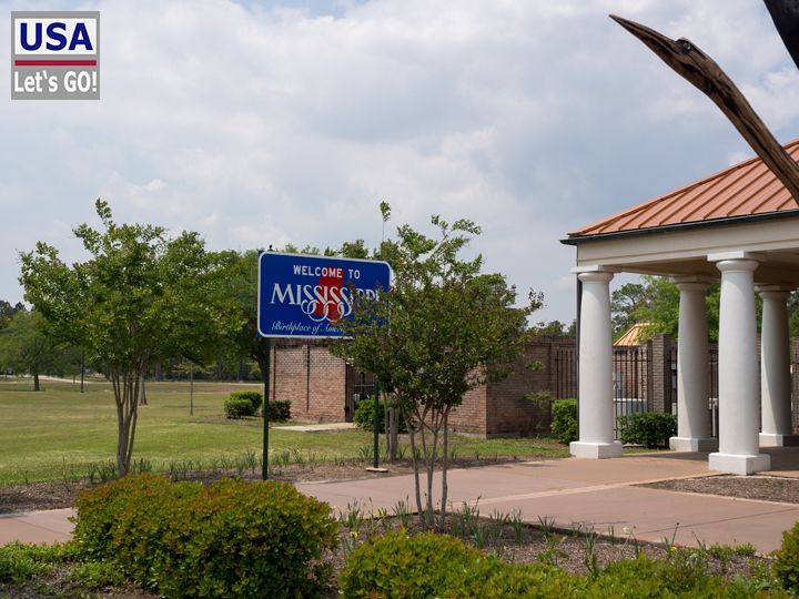 Auf der Interstate 10 überqueren wir die Grenze zu Mississippi und statten dort erstmal dem Welcome Center einen Besuch ab. Dass sich das gerade im Süden lohnt, wissen wir noch von unserer Rundreise durch den deep south im Jahr 1994. Wir werden mit der sprichwörtlichen southern hospitality begrüßt und tragen uns ins Gästebuch ein. Im Gebäude sieht es aus wie in einem Museum. Das Interieur ist an eine Südstaaten-Mansion gutsituierter Leute angelehnt.