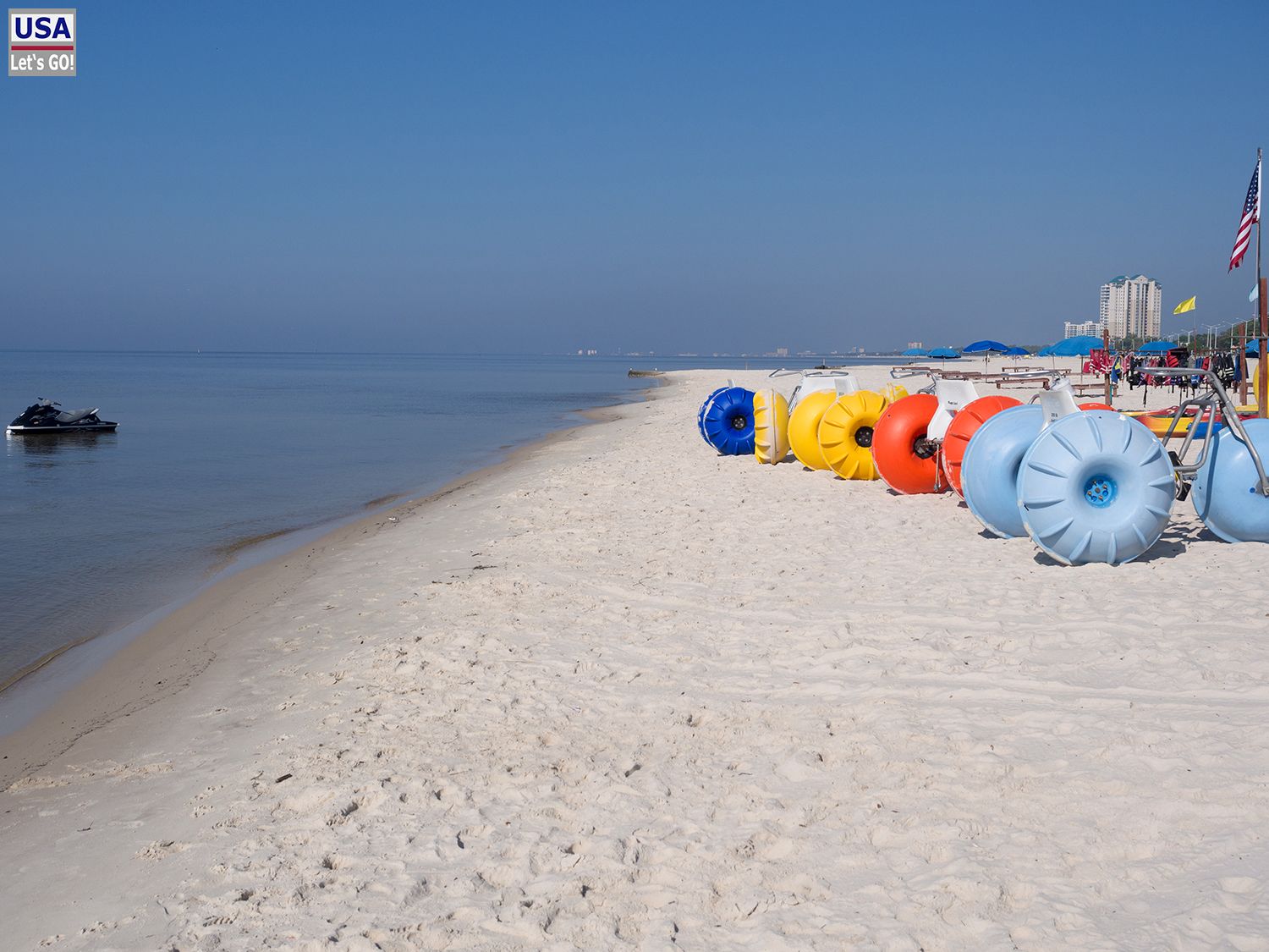 Nach dem Frühstück (mittelmäßig, wie fast überall) mache ich schnell ein paar Bilder vom in der Morgensonne liegenden Biloxi Beach, der zu so früher Stunde, kurz vor 9.00, noch recht verwaist ist.