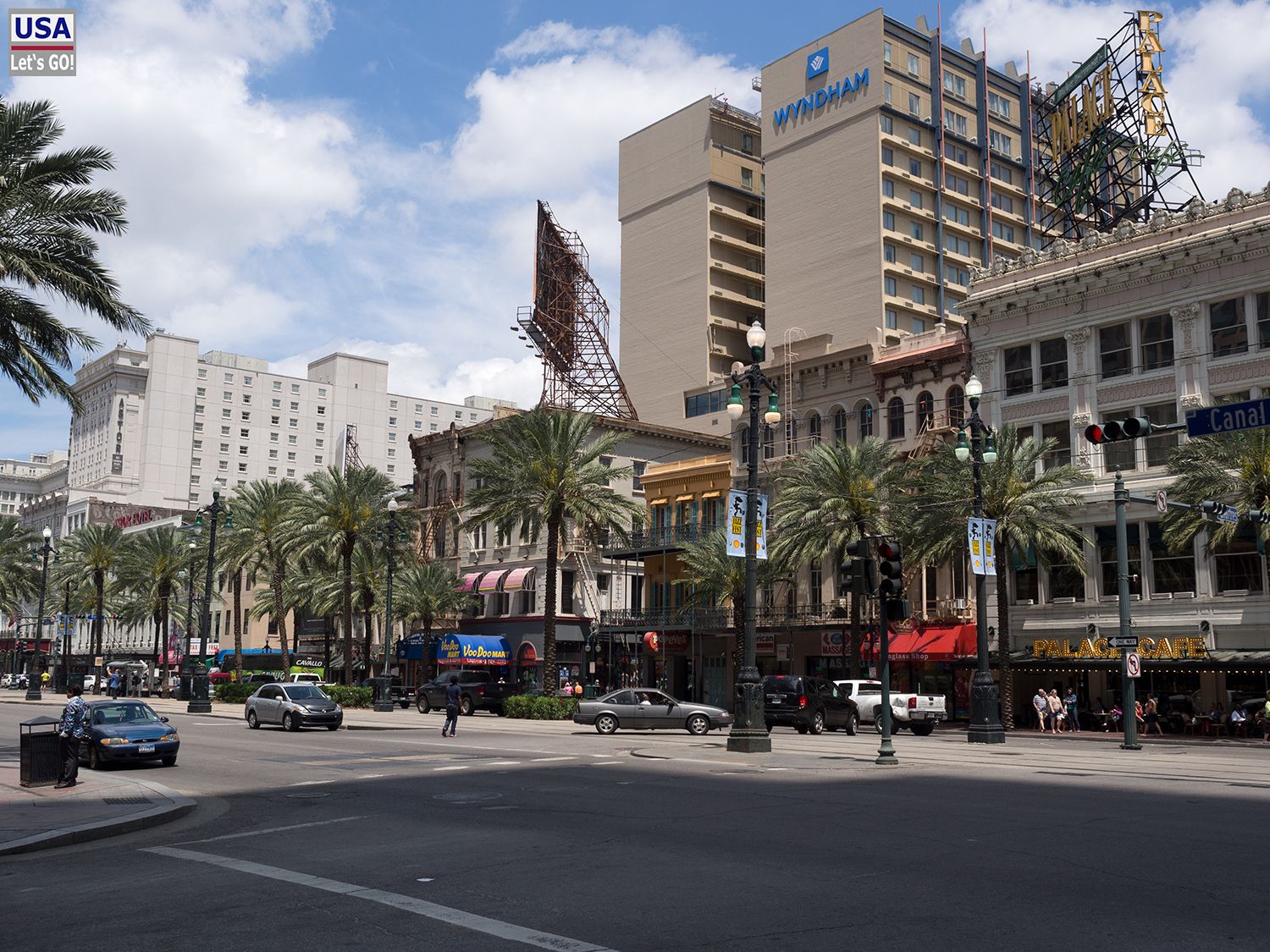 Wir parken in der Nähe des Financial Districts für acht USD Tagesticket. Das ist sehr günstig. Dann marschieren wir zur Canal Street, einer der größten Einkaufs- und Ausgehmeilen in New Orleans.
