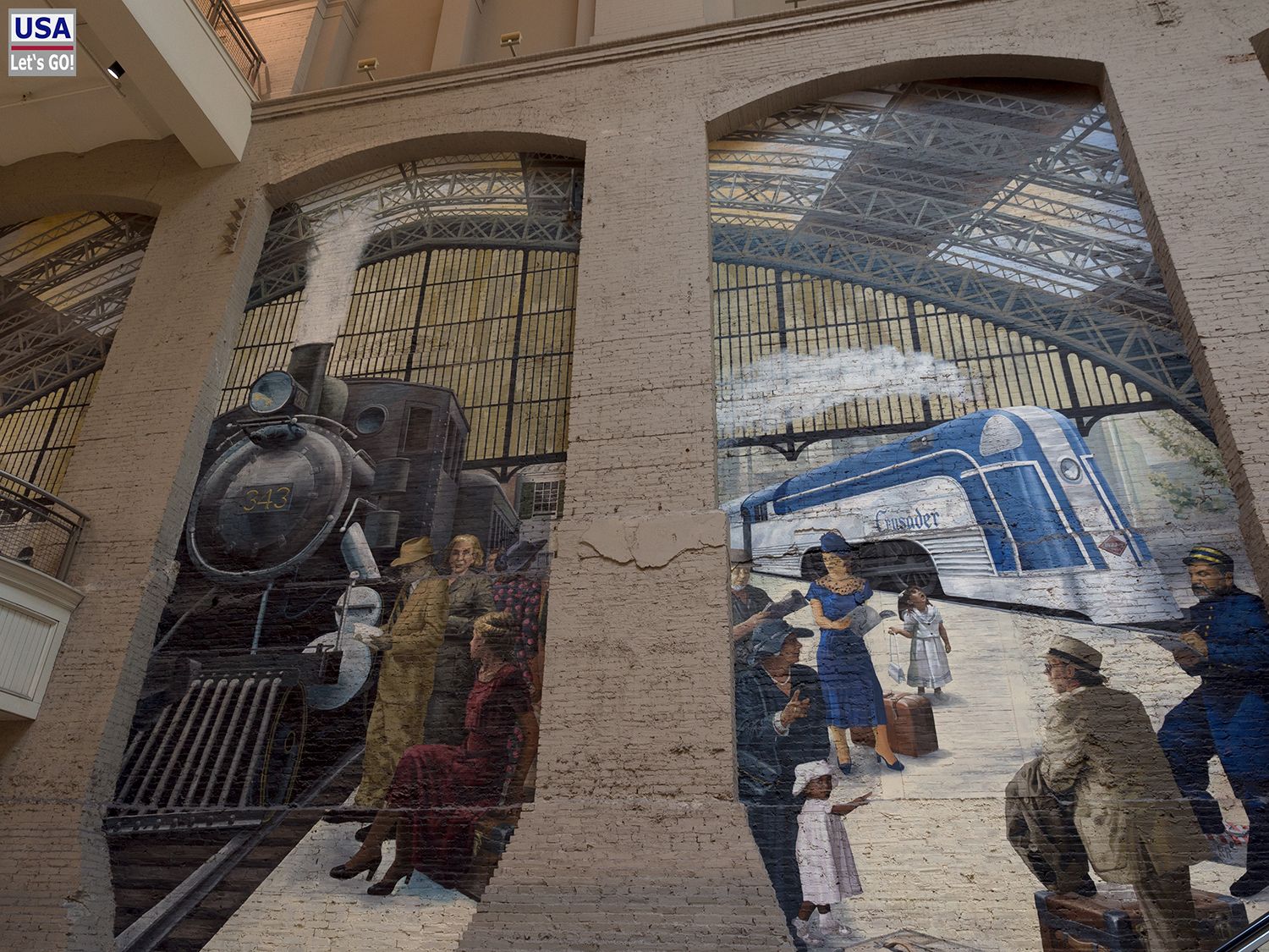Wir steigen bei der 11th Street Station Ecke Market Street aus. Noch im Bahnhofsgebäude begrüßt uns das erste mural, für die Philadelphia bekannt ist.