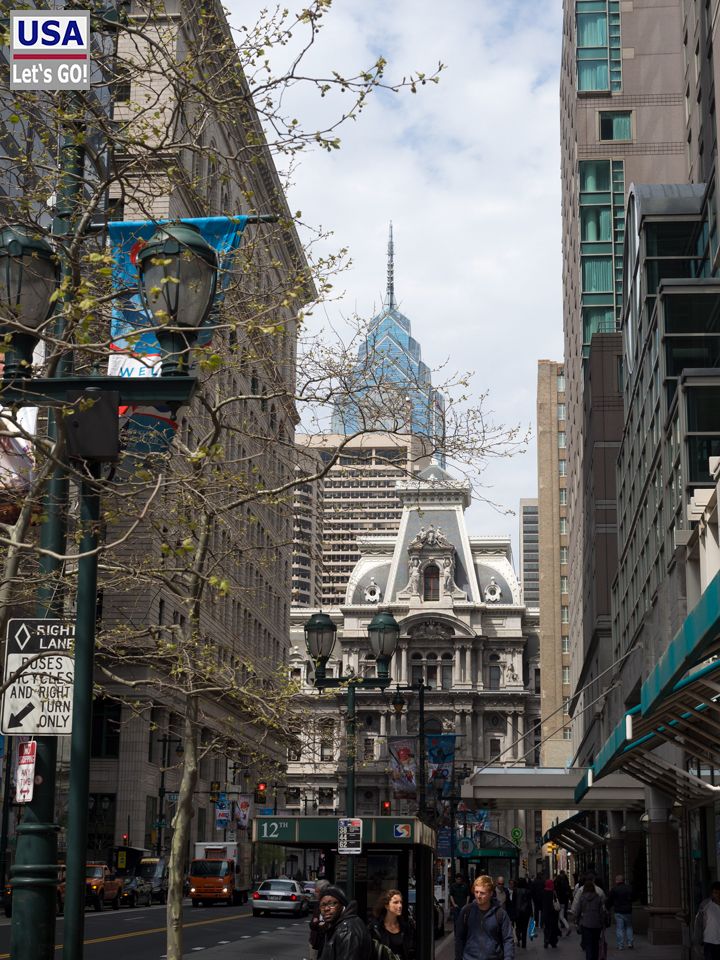 Dann geht es raus auf die Straße. Philadelphia ist eine richtige Großstadt und entsprechend lebhaft geht es zu. Wir gehen auf der Market Street Richtung City Hall.