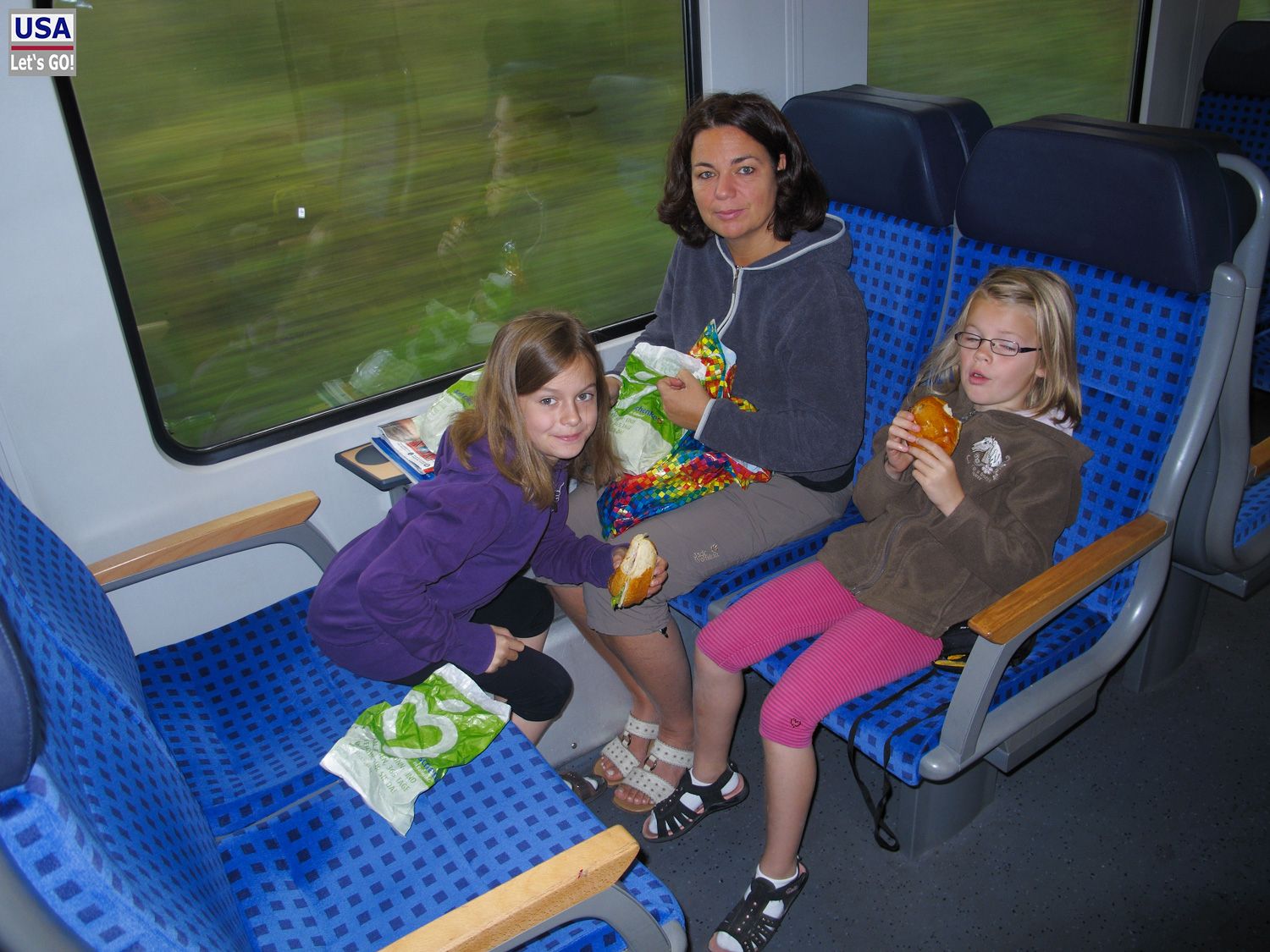 In aller Herrgottsfrühe, morgens um 4.30 Uhr, müssen wir raus aus den Federn, was die Damen etwas verstört zur Kenntnis nehmen. Schnell mit dem Taxi zum Bahnhof und den ganz frühen Zug von Paderborn HBF nach DUS. Im Zug gibt´s erst einmal ein provisorisches Frühstück, was die Laune unserer Mädels deutlich nach oben katapultiert.