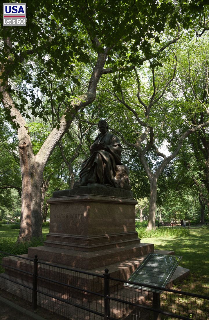Nach einer knappen Stunde reißen wir uns los und gehen am Victorian Gardens Amusement Park (Bild links) entlang der Mall weiter Richtung Norden. Die Mall ist einer der Hauptspazierwege im Central Park. Der südliche Teil ist auch bekannt als Literary Walk. Hier stehen Statuen berühmter Literaten unter dem dichten Dach urwüchsiger Ulmen (Bild rechts).