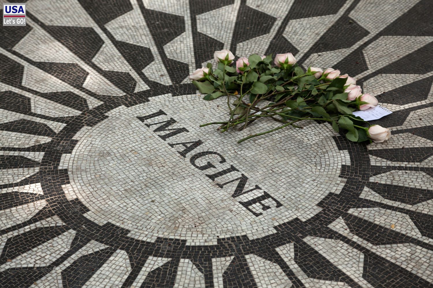 Nach John Lennons Tod wurde auf Initiative seiner Frau Yoko Ono ein Bereich im New Yorker Central Park Strawberry Field genannt. Hier gibt es das berühmte Imagine-Mosaik, welches noch heute eine Pilgerstätte für Lennon-Verehrer ist. Die Rosen und der kleine Zettel mit persönlichen Worten für das verstorbene Idol sprechen Bände.