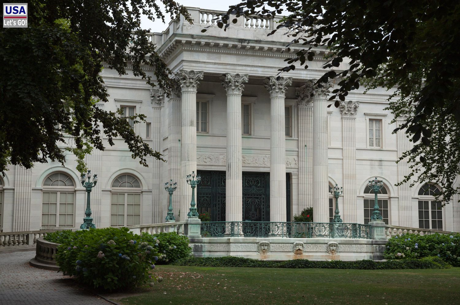 In die engere Auswahl ziehen wir das zwischen 1888 und 1892 errichtete Marble House, jedoch stellt sich heraus, dass dieses unverkäuflich ist, da es unter Denkmalschutz und der Verwaltung der Newport Preservation Society steht. Schade, wir sind so kurz davor gewesen den Deal klar zu machen. Wenigstens mache ich ein Foto durch die schmiedeeisernen Gitterstäbe, die unser heute schon geschlossenes Objekt der Begierde umzäunen.