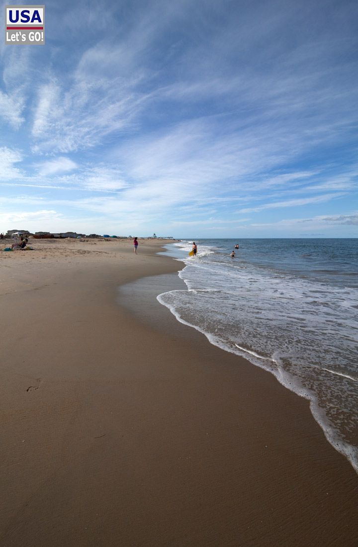 Außerdem ist Manns Harbour ein hervorragender Ausgangspunkt. Man fährt nur sieben Minuten bis zum offiziellen Visitor Center der Outer Banks. Weil das so nah ist, fahren wir noch zum Strand. Etwas südlich vom Outer Banks Fishing Pier haben wir den Strand fast für uns alleine. Es ist zwar schon relativ spät, aber immerhin steht das Wochenende vor der Tür. Dass hier so wenig los ist, haben wir nicht erwartet.