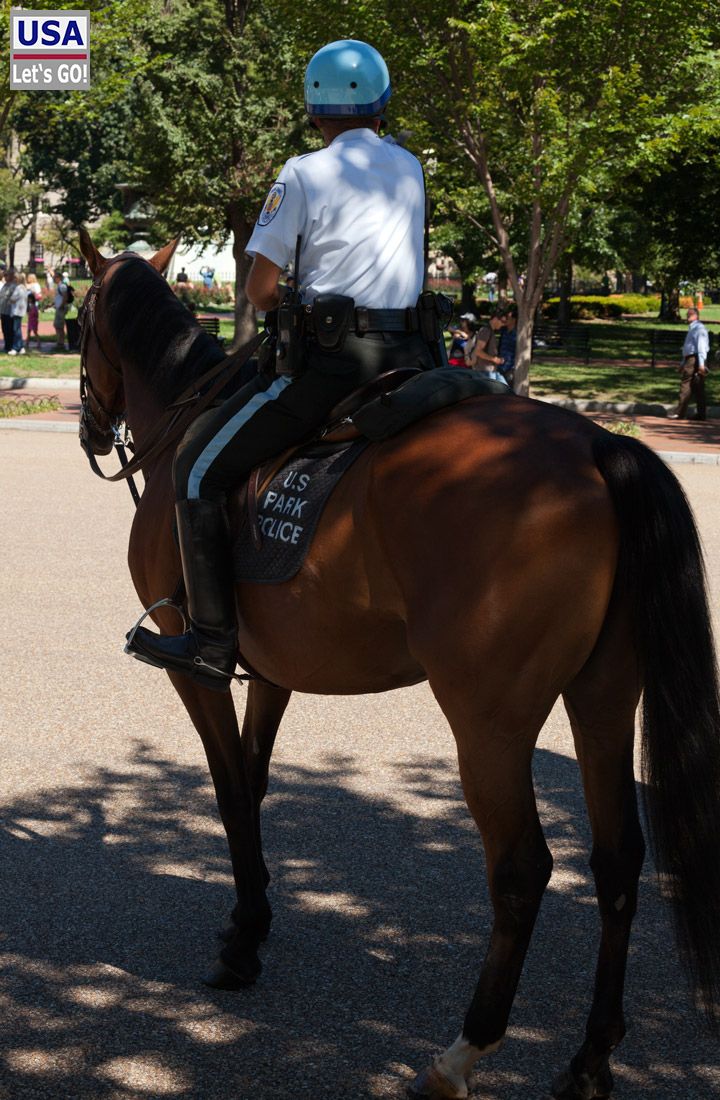Wie schon gestern sind wir hier nicht alleine. Bei dem herrlichen Wetter sind Scharen von Touristen unterwegs. Alle möchten einen Blick auf den berühmten Präsidentenwohnsitz erhaschen. Auf dem Dach sind aufmerksame Wächter vom Secret Service postiert.