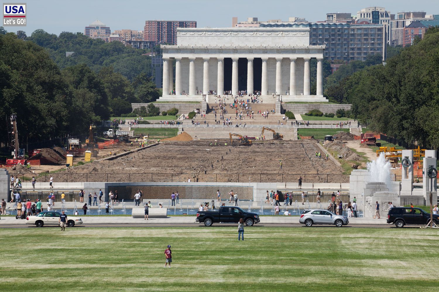 Das Lincoln Memorial ist vor außen und innen sehr beeindruckend. Wie man auf dem Bild sieht, sind die National Mall und der Lincoln Memorial Reflecting Pool eine Großbaustelle.
