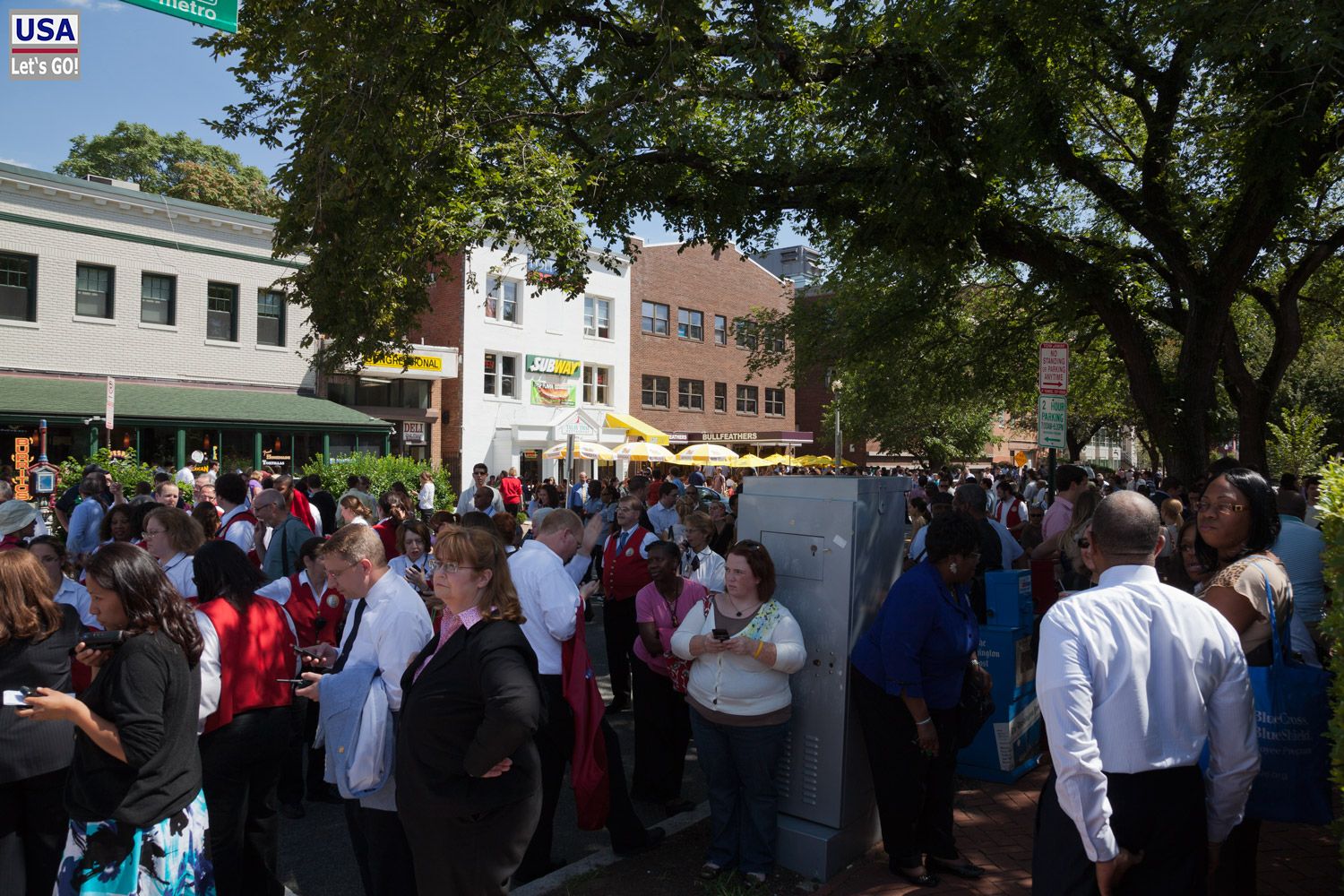 Da niemand einschätzen kann, wie es um die Bausubstanz der altehrwürdigen Gebäude bestellt ist, ist der Zutritt zu allen öffentlichen Gebäuden versperrt. Auch sämtliche Bürogebäude in der City werden evakuiert. Man stelle sich das vor: In einer Großstadt der Kategorie Washington kommt das gesamte berufliche Leben zum Erliegen. Sirenen allüberall und die Menschen strömen in Büro-Kluft aus den Gebäuden. Jacket über die Schulter, notdürftig das Wichtigste in die Akten- oder Handtasche gestopft und dann nichts wie raus.