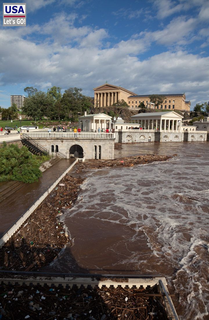 Auf der ca. 30-minütigen Fahrt sehen wir, dass es über Nacht einige kleinere Erdrutsche gegeben. Einige Bäume wurden entwurzelt und auch der Schuykill River hat ein wenig Ärger gemacht. An manchen Stellen ist er über die Ufer getreten. Die Schäden sehen jedoch insgesamt nicht gravierend aus.