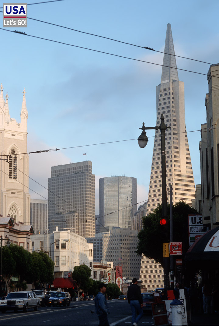 Anschließend duschten wir und machten uns dann auf zu den typischen Straßen von San Francisco. Über die Columbus Avenue mit der markanten Transamerica Pyramid kamen wir zur Lombard St., die von vielen Touristen belagert wurde.