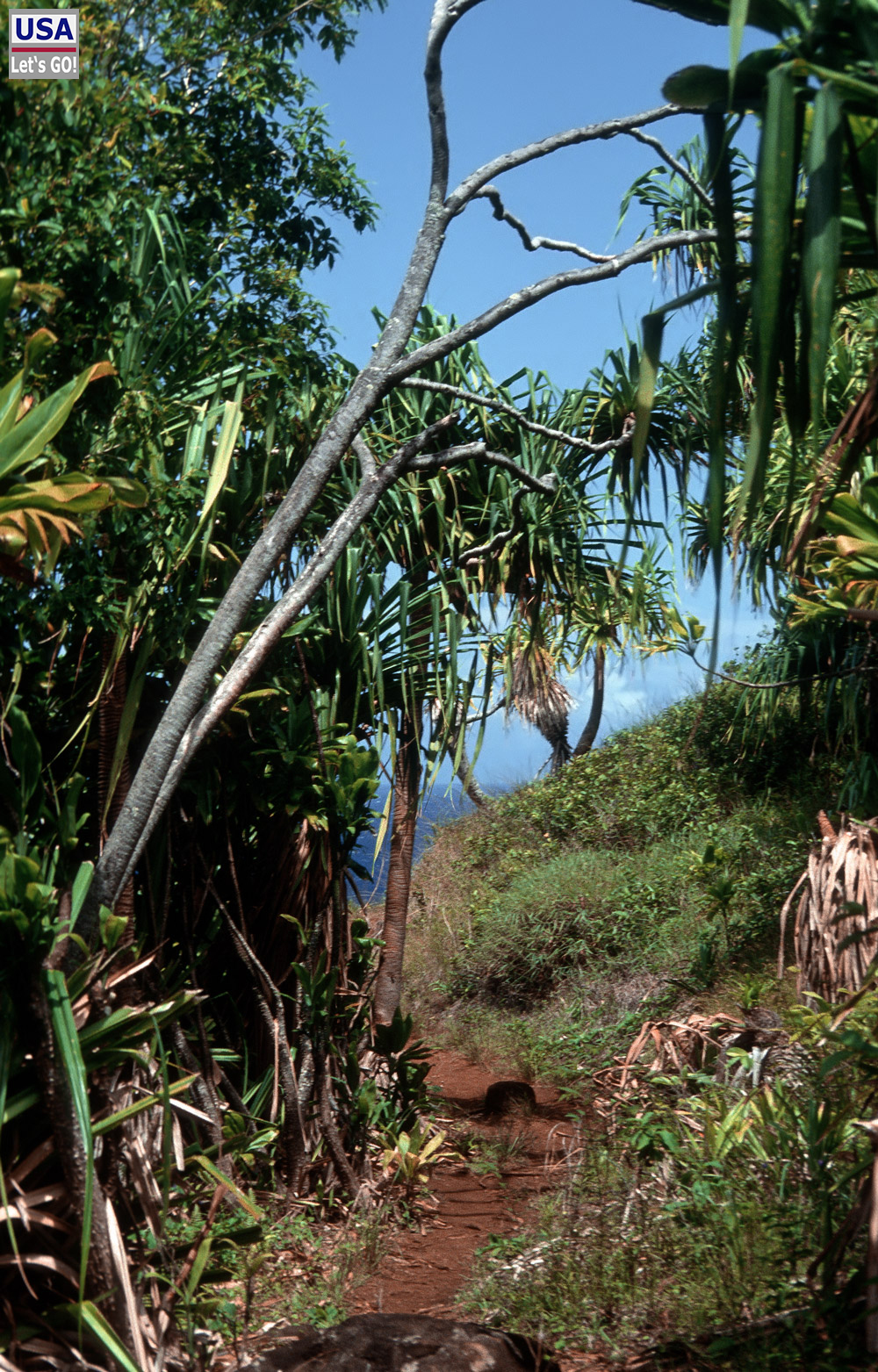 Anja war der Weg zu schwierig, nachdem wir schon gleich am Anfang über einen kleinen Bach kraxeln mussten, der wegen des Regens in der Nacht Wasser führte. Nach ungefähr einer halben Stunde kehrte sie um und vertrieb sich die Zeit am Ke'e Beach. Ich genoss die Wanderung in vollen Zügen. Der Weg war einfach klasse. Zwar stellenweise etwas aufgeweicht und matschig, aber insgesamt gut zu gehen.