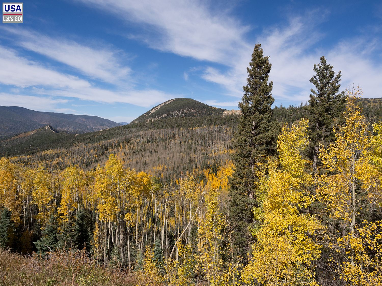 Der scenic byway hält, was die Beschreibungen im Internet versprochen haben. Eine landschaftlich sehr schöne Strecke, die mich nach einer Weile über den gut 3000 m hohen Cucharas Pass führt. Hier oben haben schon viele Bäume gelbe Blätter.